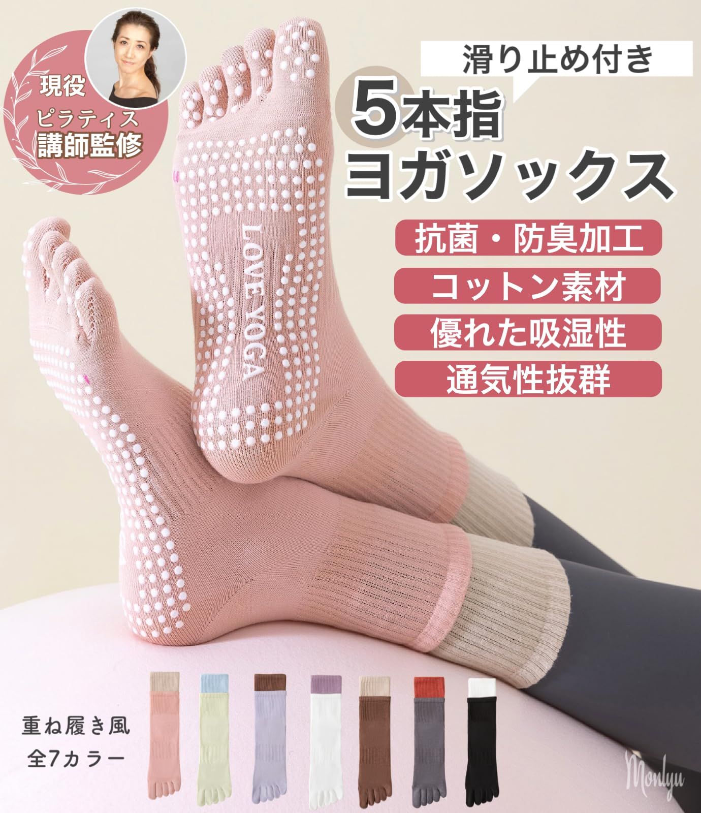 [Monlyu] ヨガソックス 5本指 滑り止め レディース ピラティスソックス ヨガ 靴下 抗菌防臭 ロング ピラティス スポーツ トレーニング グリップ ソックス すべりどめ ウェア 冷房対策 防寒対策 くつした くつ下 吸湿性 通気性 速乾