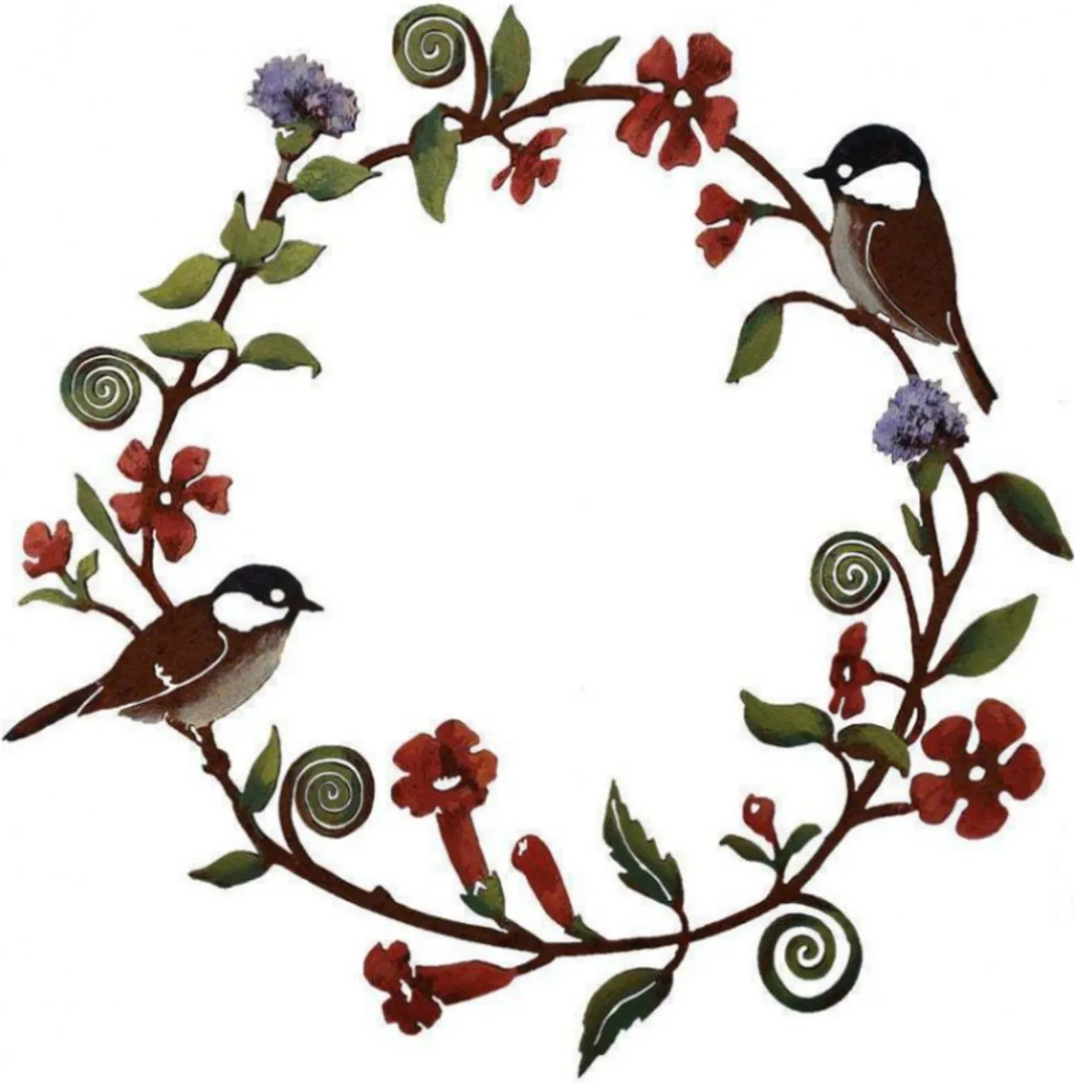 アイアンリース 壁掛け アンティーク インテリア 装飾 玄関 ガーデン 壁 北欧 小鳥 草花 模様 ラウンド デザイン ドアリース ナチュラル レトロ 小鳥