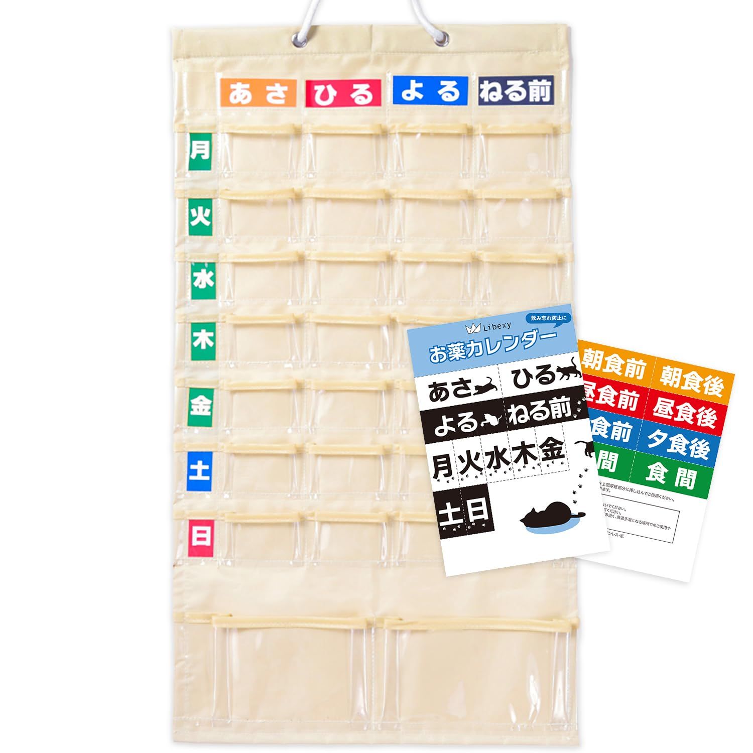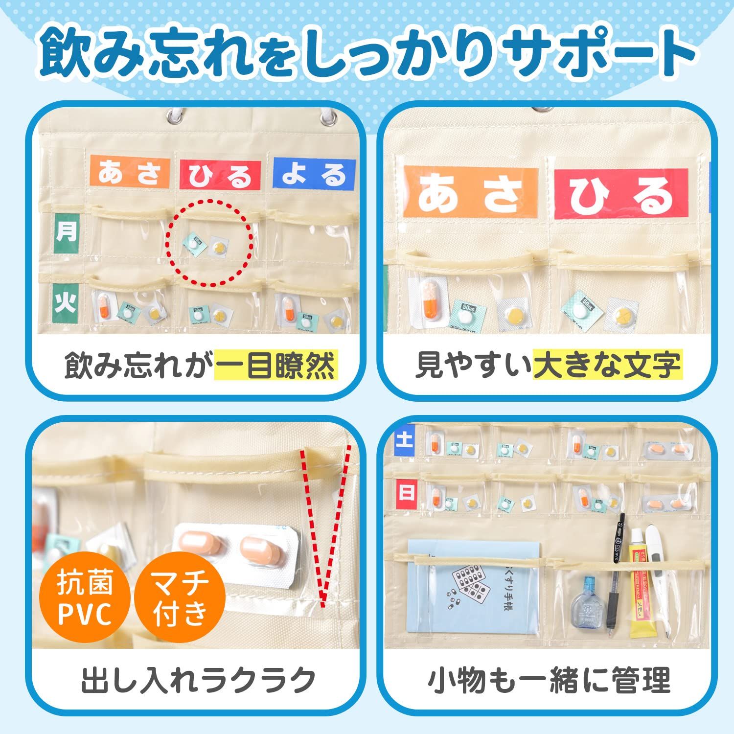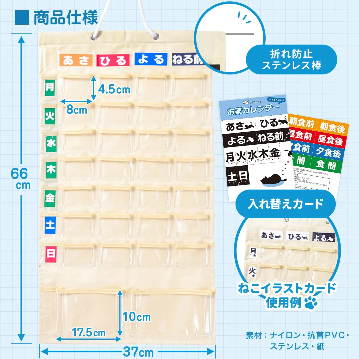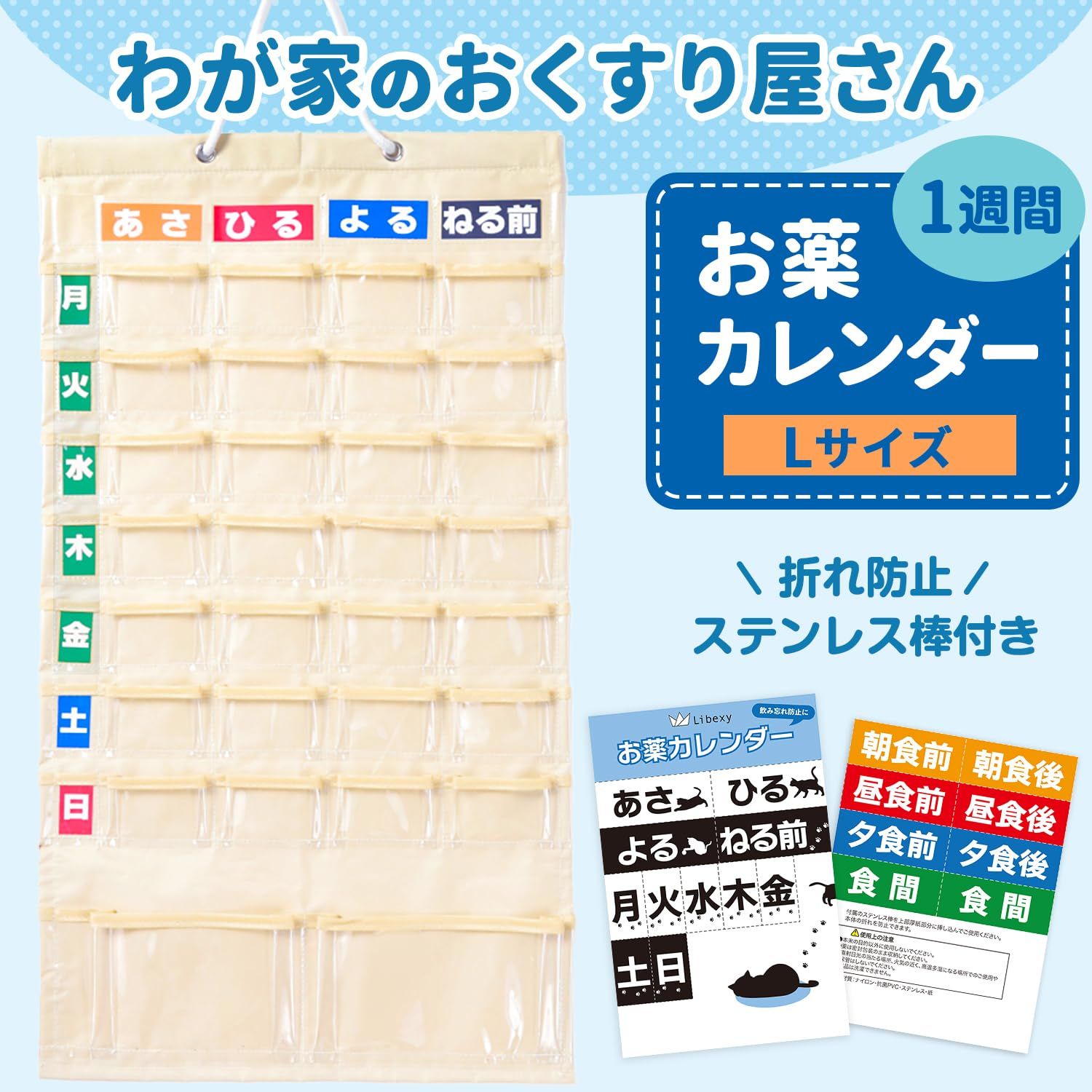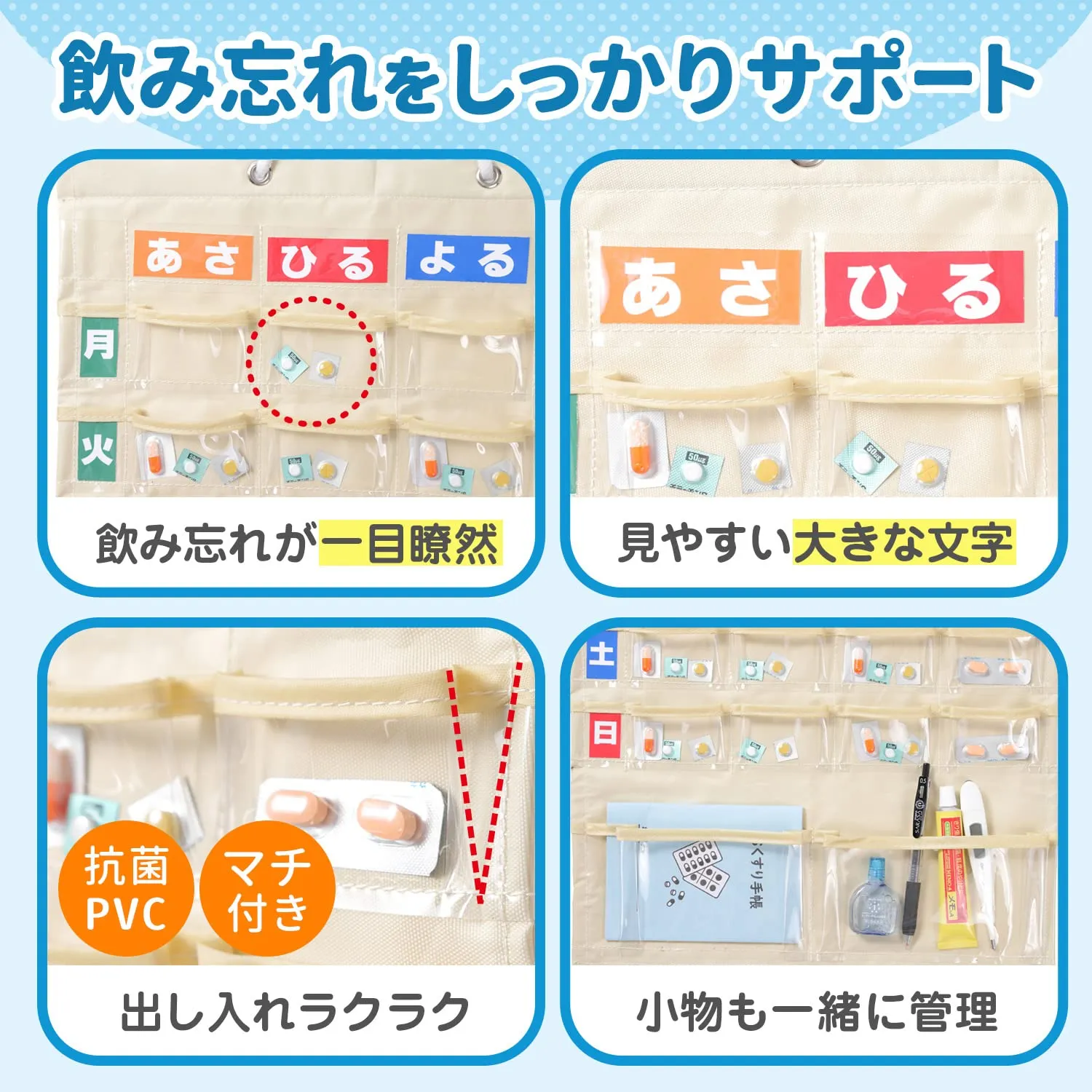 お薬カレンダー 1週間 壁掛け 薬 飲み忘れ防止 投薬 服薬 収納 ケース ポケット 抗菌 おくすりカレンダー (L(小物ポケット付き)) 薬入れ