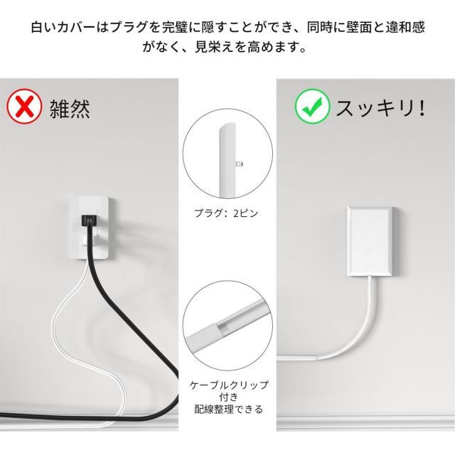 美観・おしゃれ:おしゃれな電源タップです。カバーはプラグを隠すことができ、壁に溶け込んで、壁面と違和感がありません。昔の雑然とした壁面を変え、自宅やオフィスなどの場所をよりすっきり、美しくすることができます。