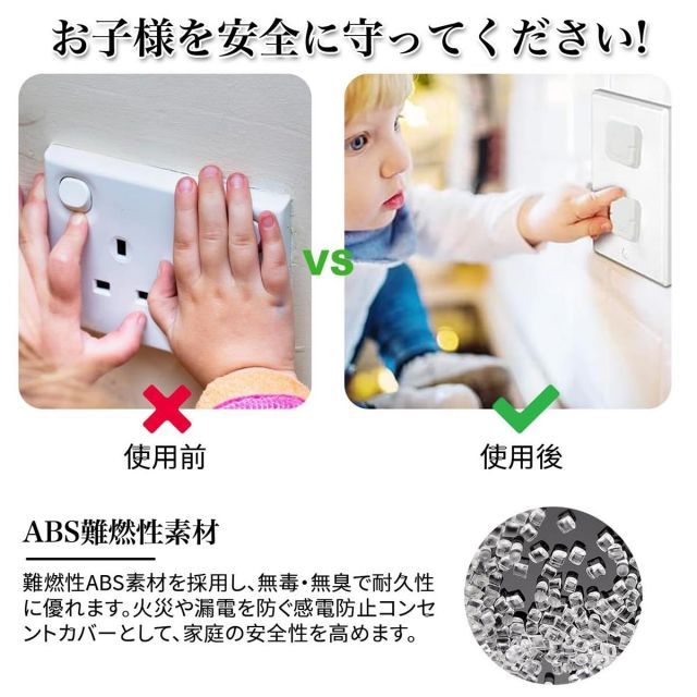 【高品質ABS素材】難燃性ABS素材を採用し、無毒・無臭で耐久性に優れます。火災や漏電を防ぐ感電防止コンセントカバーとして、家庭の安全性を高めます。