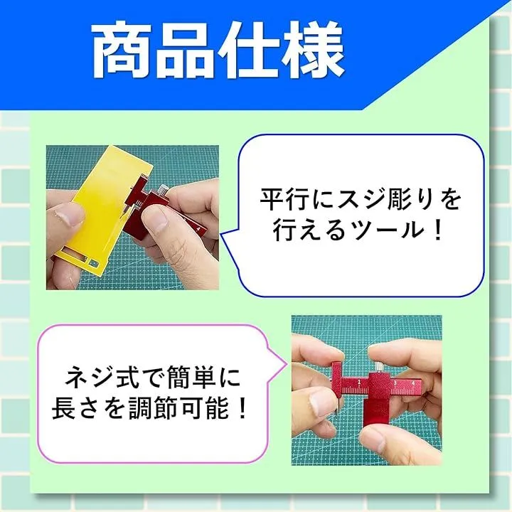 「平行ラインを正確に彫れる」ガイド構造により、一定間隔の平行線を安定して筋彫り可能。