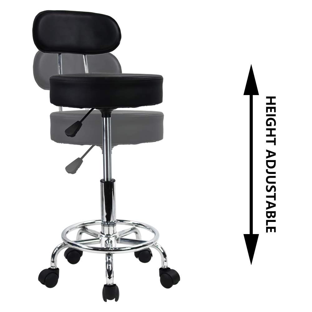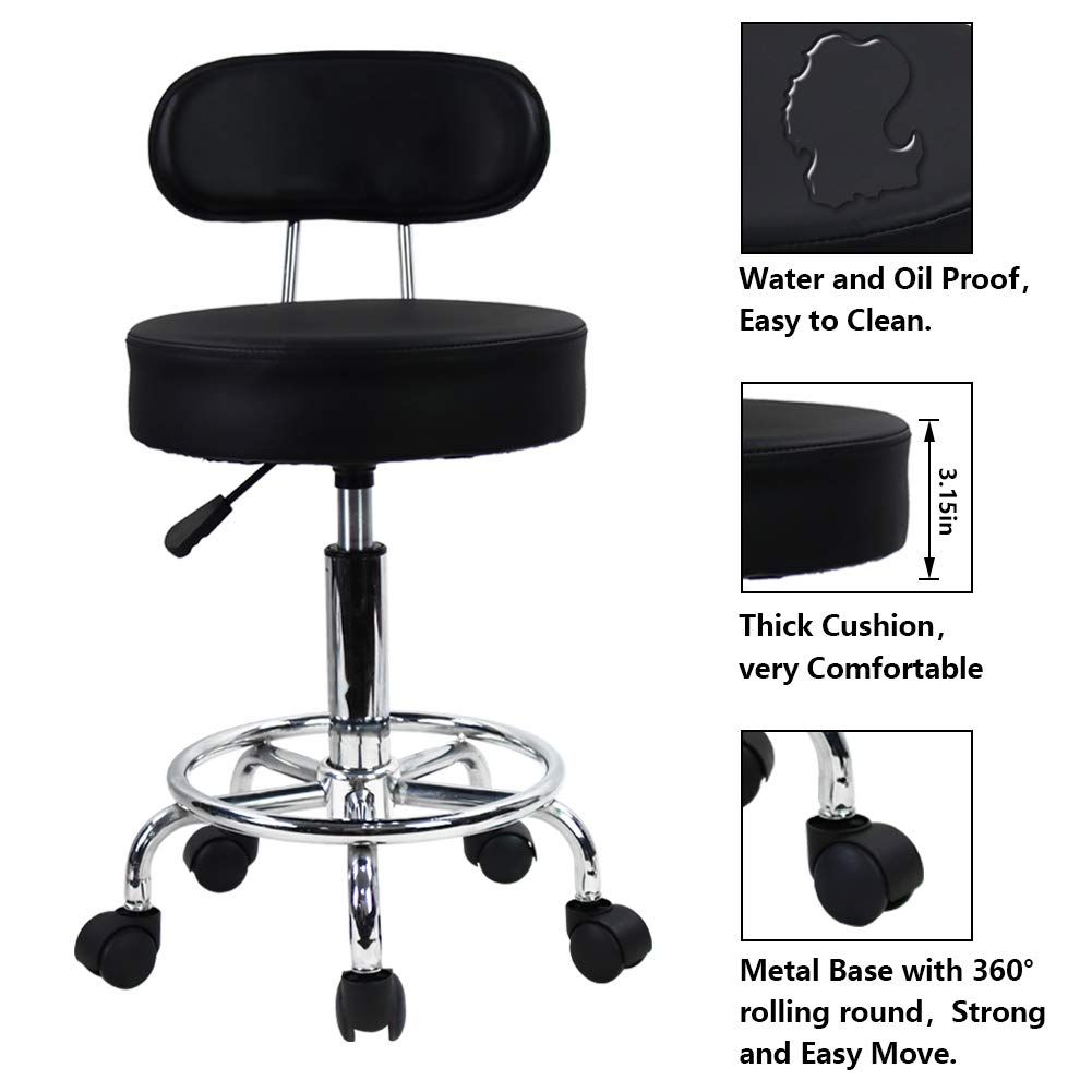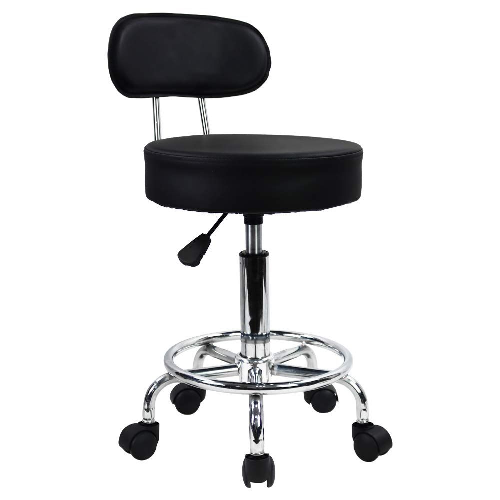KKTONER 丸回転昇降スツール キャスター 低い背もたれフットレスト付き 高さ調節可能 チェア 製図pc仕事椅子 ブラック (黒)