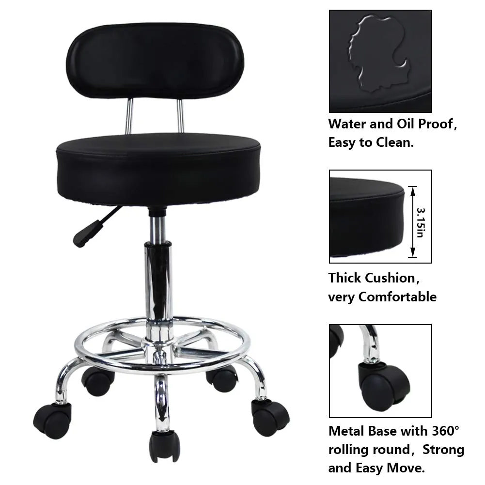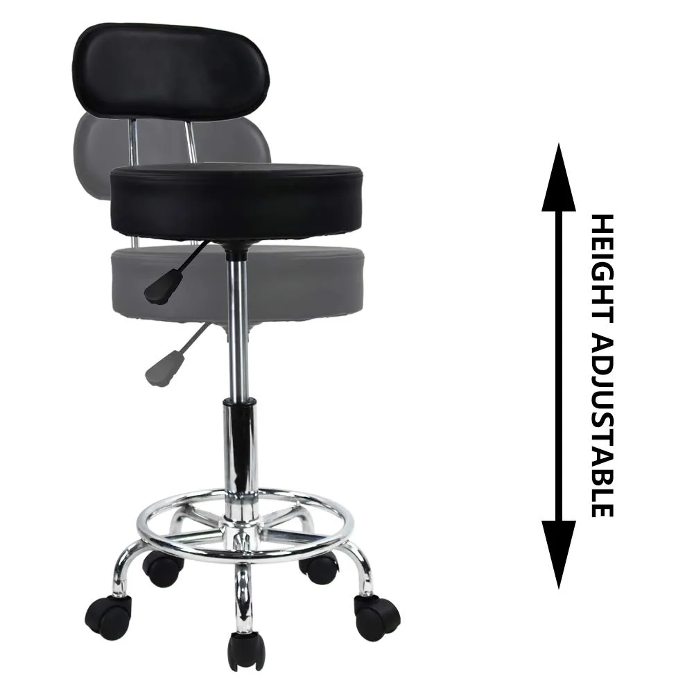 低い背もたれ付きローリングスツール:ワーク、家、ネイル、美容院、理髪店、フェイシャルショップ、SPA、サロンに最適です。