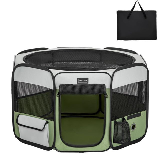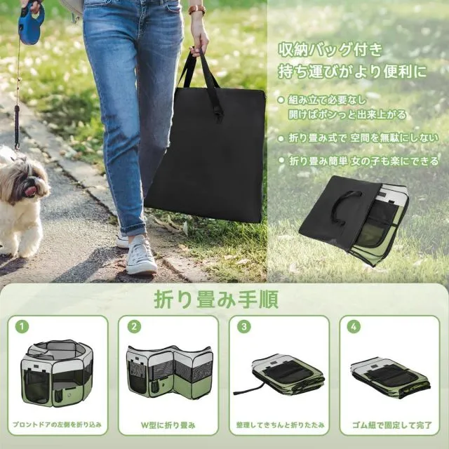 【パッと開いてすぐ使える】猫の産屋猫の分娩室折りたたみ犬猫兼用メッシュ屋根付き軽量収納バッグ付き部屋のインテリアに馴染みキャンプアウトドアお出かけ用品小型ペット(Sサイズグリーン)