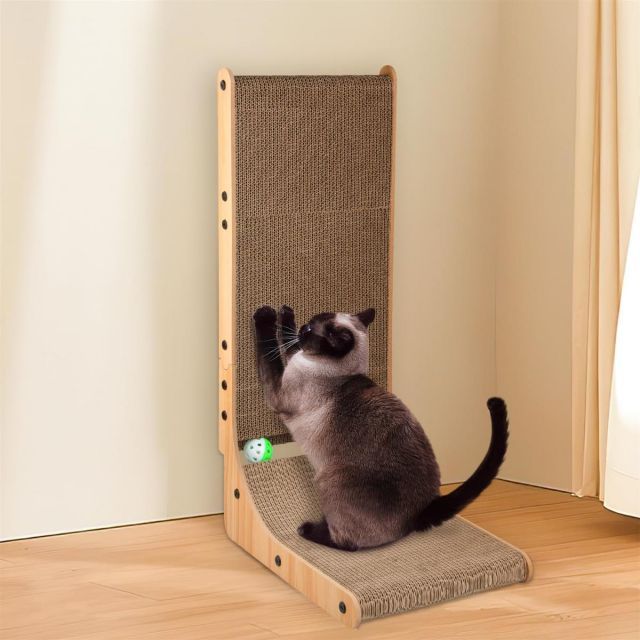 【革新的なL字型デザイン】壁やソファに立てかけて使用可能。家具を保護しながら、猫ちゃんの爪研ぎ欲求を満たします広いひっかき面積で、猫ちゃんがさまざまな姿勢で快適に爪研ぎできる設計です。