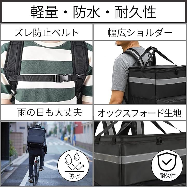 「快適な持ち運び」 リュック型デザインで両手が自由に使え、自転車やバイクでの配達にも最適。