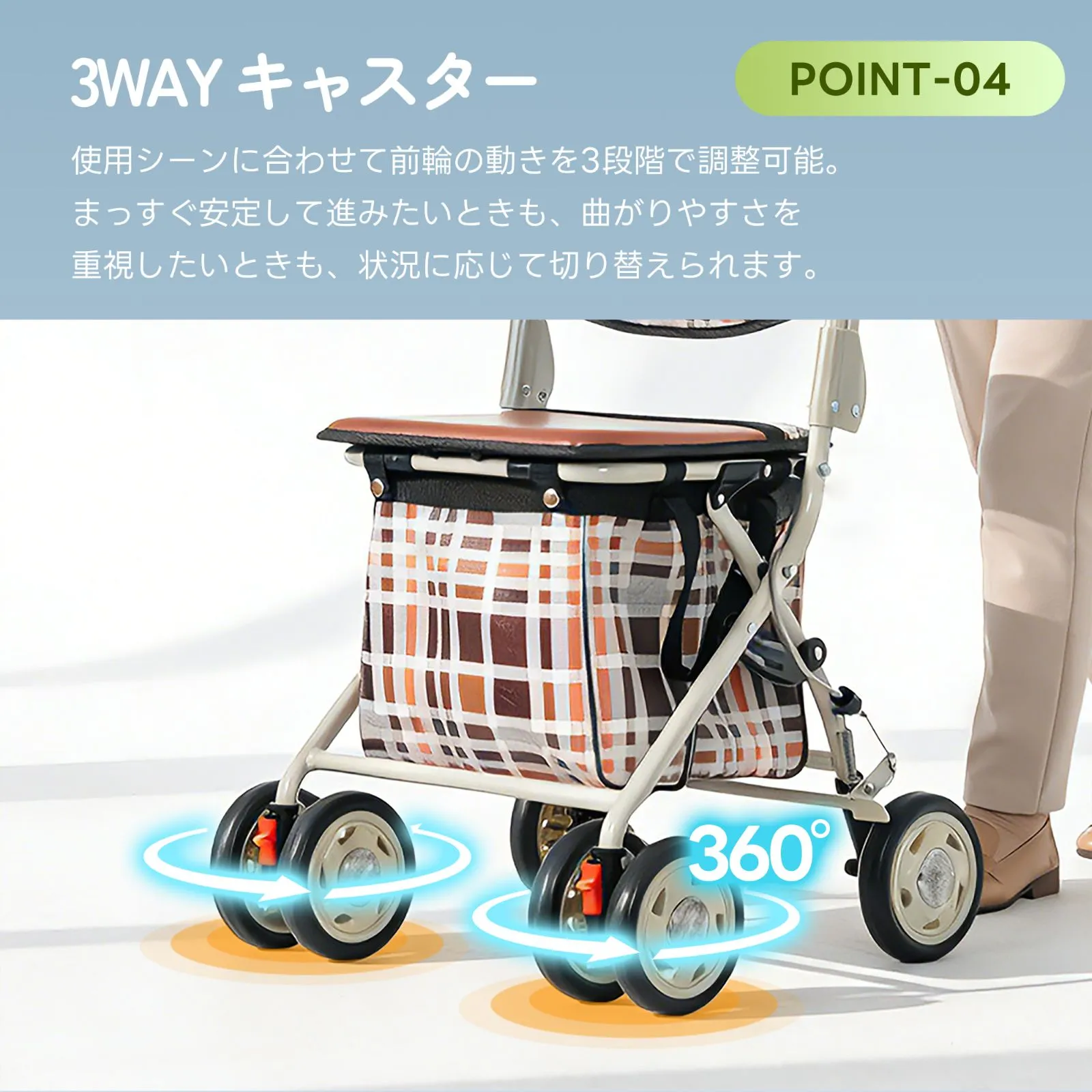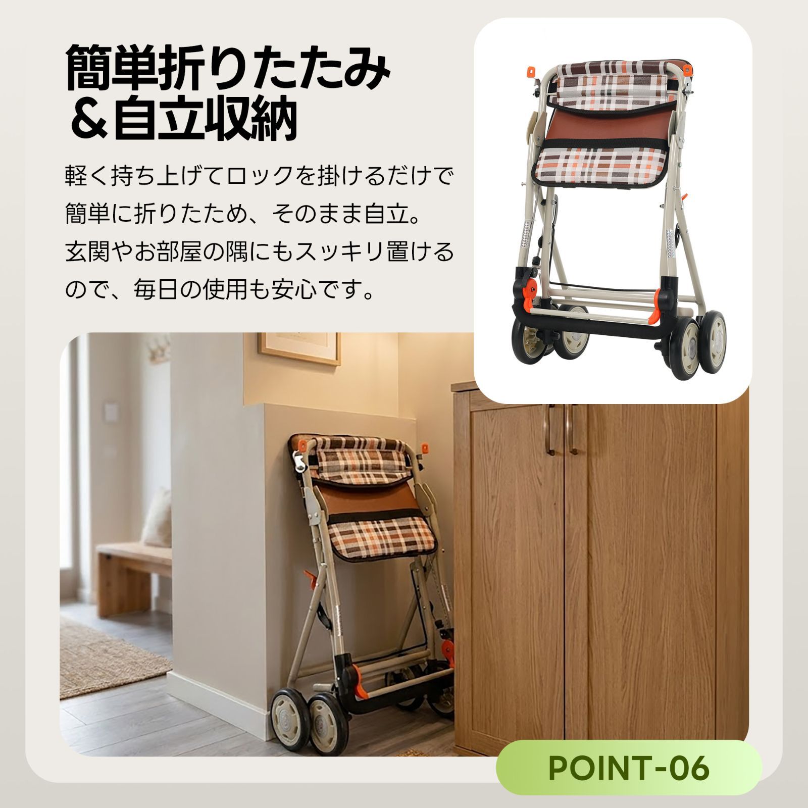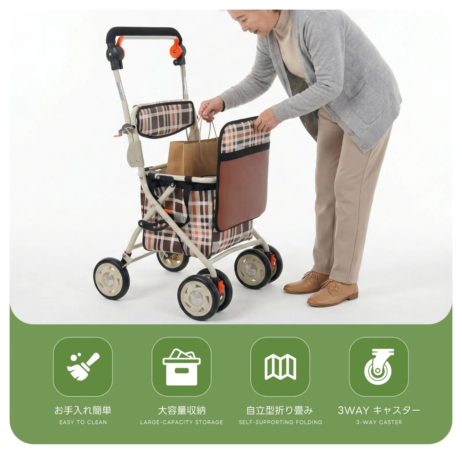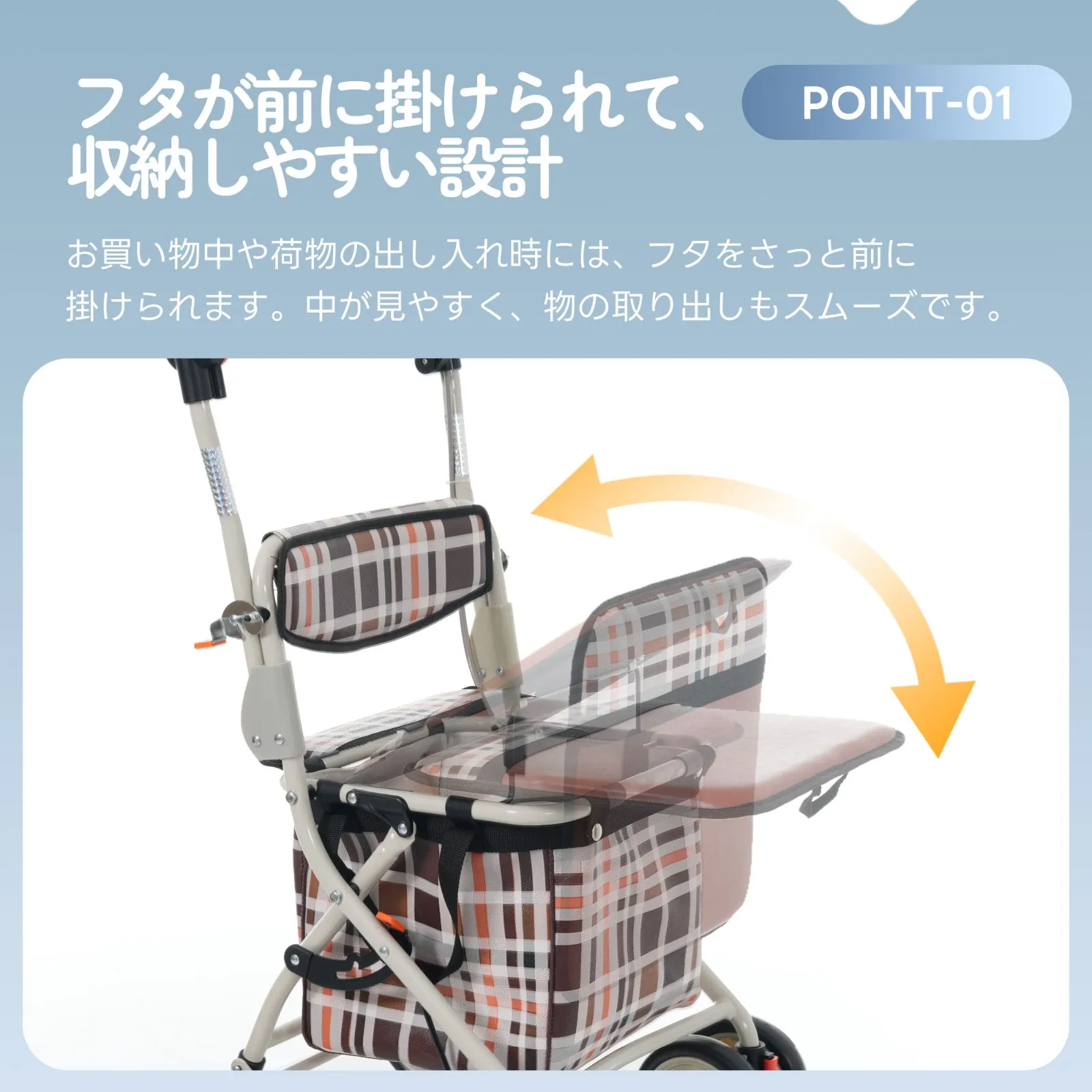 シルバーカー 歩行器 歩行車 室外用 6段階高さ調整 折りたたみ可能 座面付き 四輪 キャスター付き おしゃれ 座れる 散歩 シニア 歩行補助 買い物 ショッピングカー 大容量 老人車 手押し車 介護 高齢者