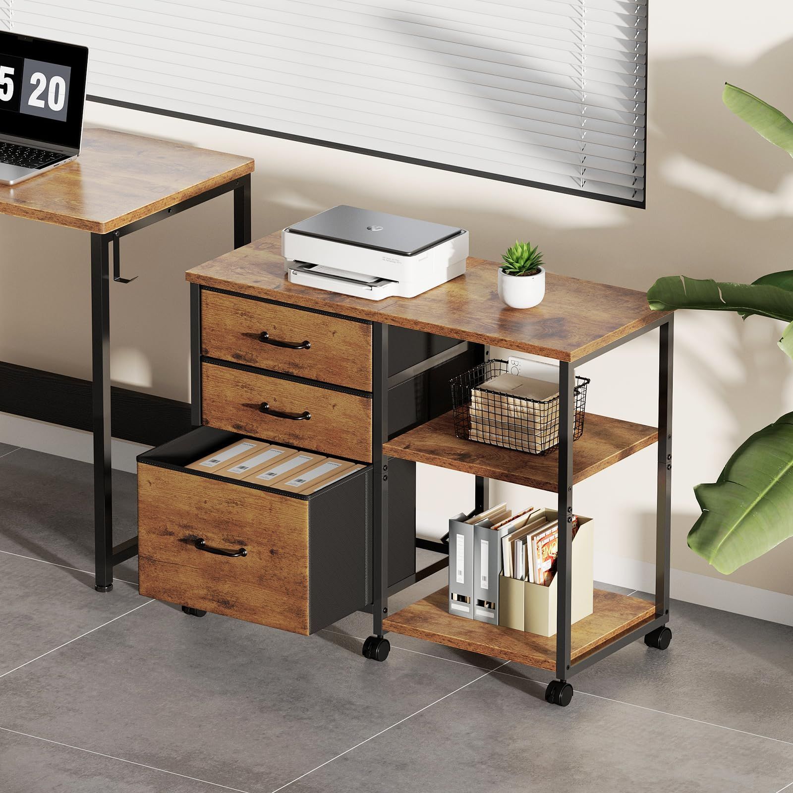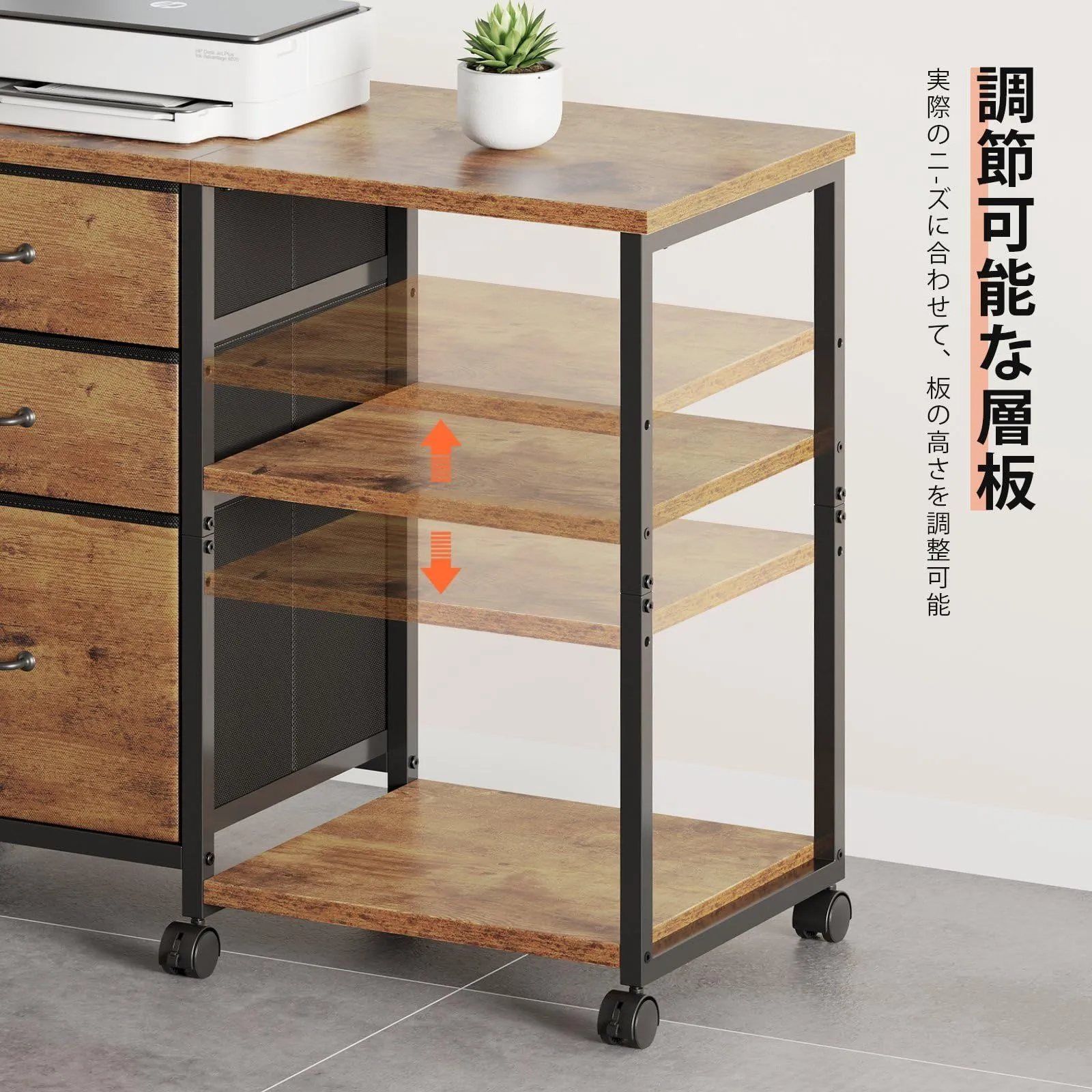 【大容量収納】引き出しが3段付き、用途で使い分けられるので細かいファイル整理が可能です。引き出しの深さを上から下へと増やしていくことで、モノごとの収納ニーズを満たすことができます。以前のキャビネットより高さを調節できるレイヤが多くなっているので、高い本や書類を置くことができます。