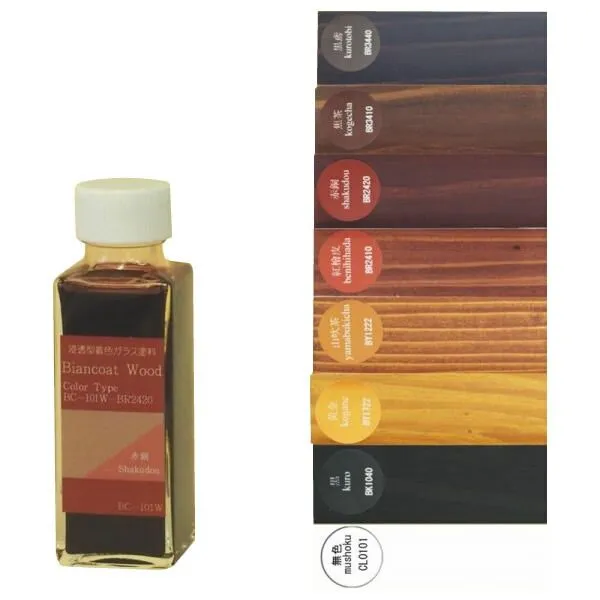 浸透型着色ガラス塗料です。例えば高所の軒天や羽目板。近年の和・洋モダン住宅に多い無垢木材ルーバーは、メンテナンスが難しい建材の一つです。屋外の無垢木材にビアンコートWを施工しておけば一般的な有機樹脂塗料では得られないガラスならではの耐候性により、様々なトラブルから素材を守り褪色せず、木の持つ本来の美しさを長期間維持させます。