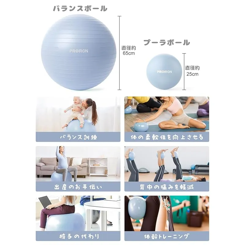【姿勢改善と腰痛緩和】 長時間椅子に座って体の不調や腰痛を感じていませんか? PROIRONのバランスボールを選ぶことで、オフィスチェアの代わりとして、簡単に運動不足を解消することができます。また、ダイエットにもおすすめです。