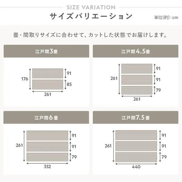江戸間7.5畳用:261cm×440cm(91cm×440cm 2枚、79cm×440cm 1枚)