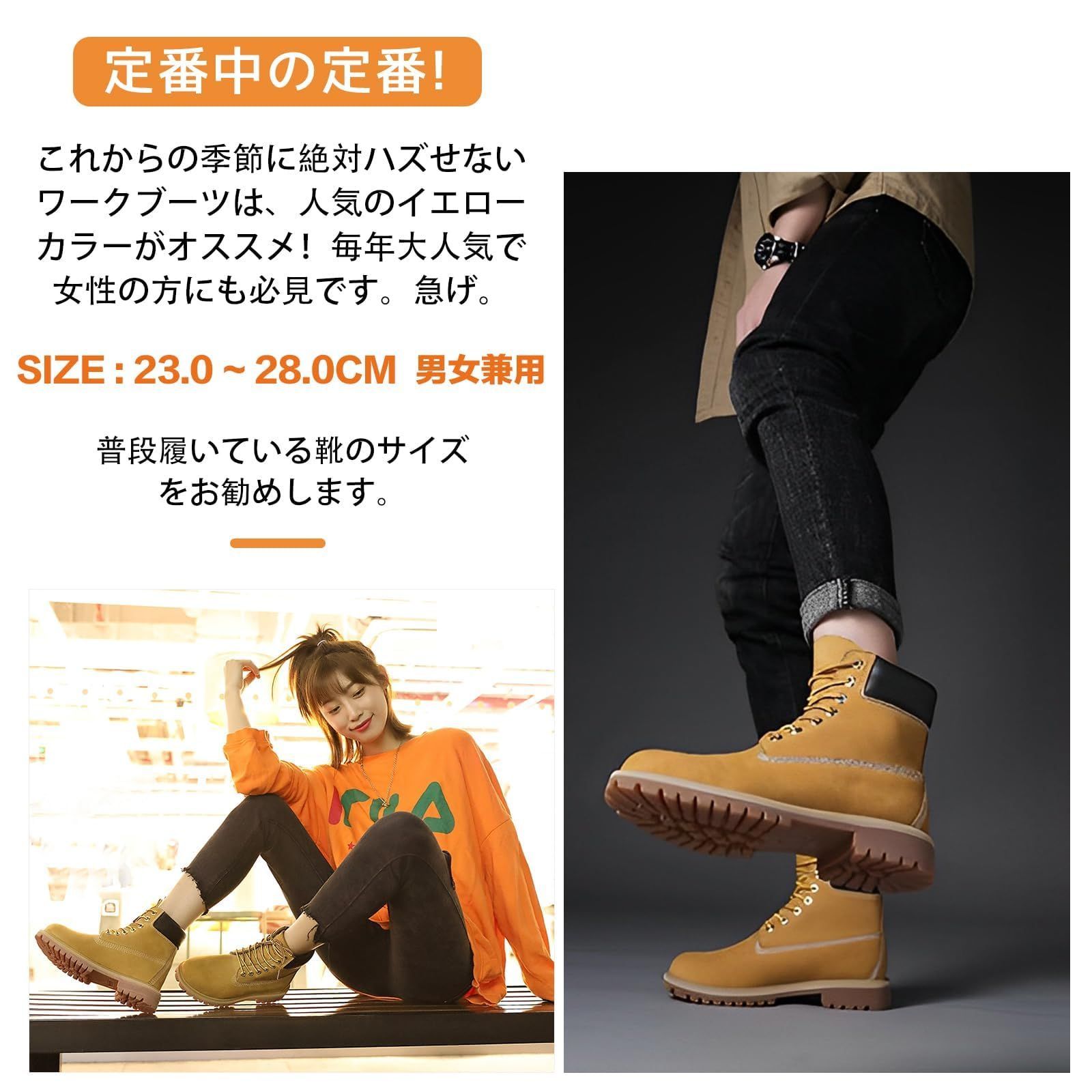 [SOARHOPE] メンズ イエローブーツ エンジニア ショート ワークブーツ ハイカットレースアップ 編み上げ 軽量 防水 ブーツ Boots Leather for man
