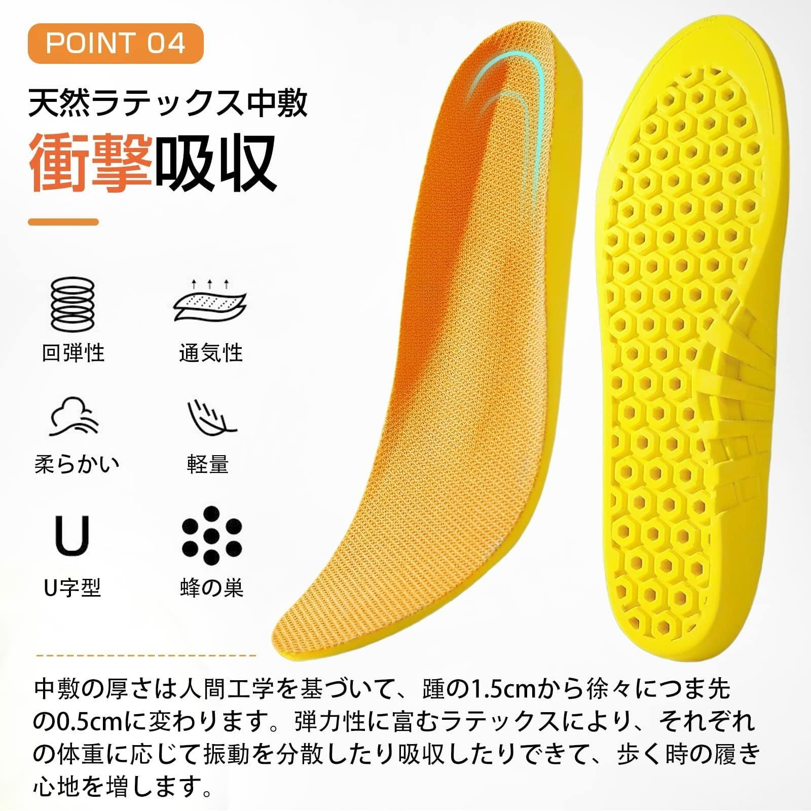 【ラテックス中敷で快適な歩行】柔らかく弾力性のあるラテックス中敷を採用。体重に応じて衝撃を分散し、歩行時の負担を和らげます。長時間の使用でも足元を快適に保ち、スムーズな歩行をサポートします。
