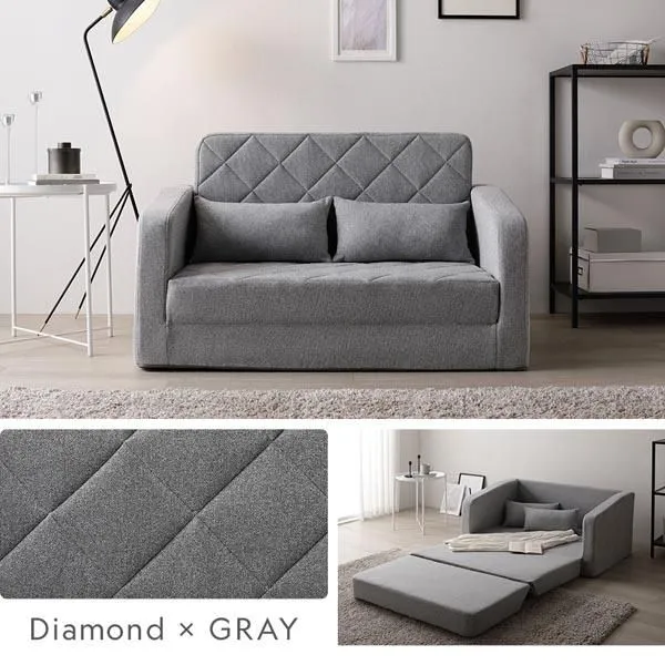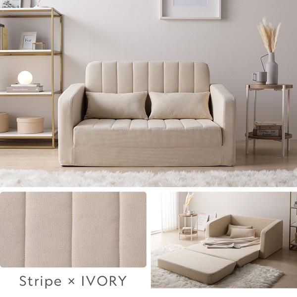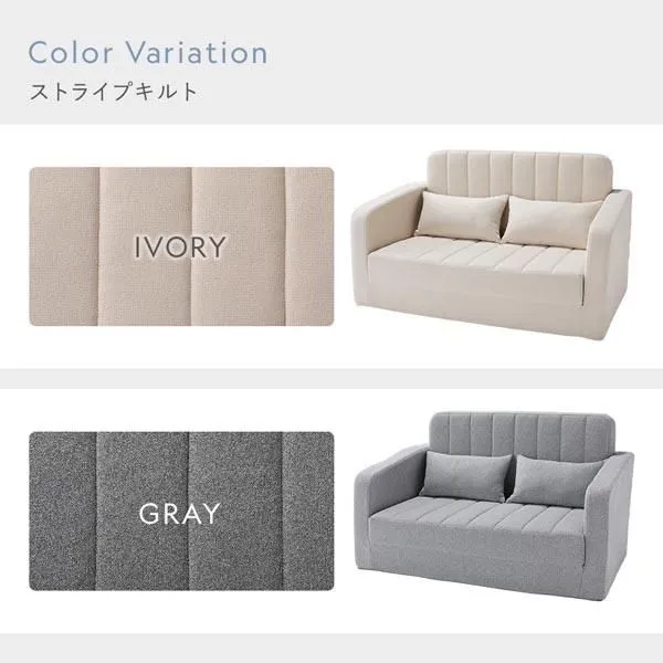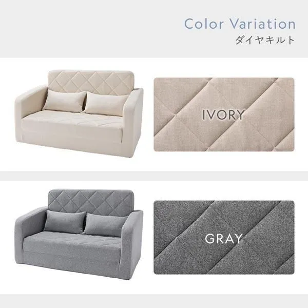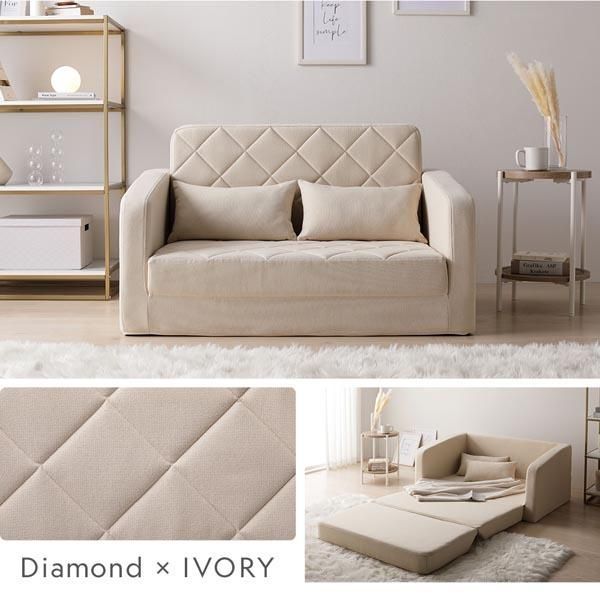 商品名:3WAY ソファベッド 2人掛け アイボリー ダイヤキルト 肘付き 高反発ウレタン 体圧分散 寝具 リビング インテリア雑貨 組立品
