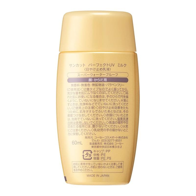 KOSE SPF50+ サンカット パーフェクト UVミルク 無香料 60mL