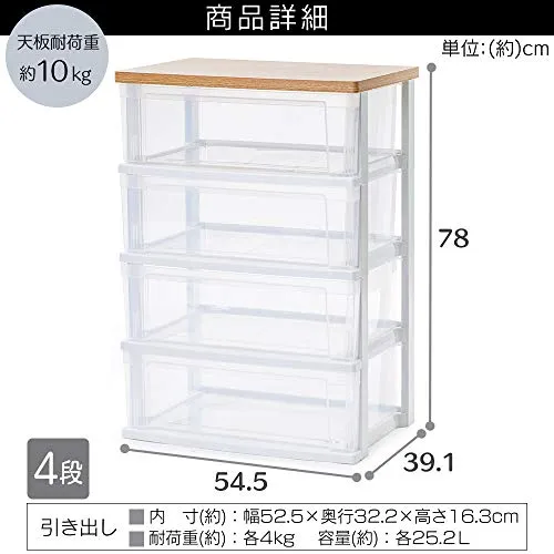 耐荷重:天板10kg、引き出し1段当たり約4kg