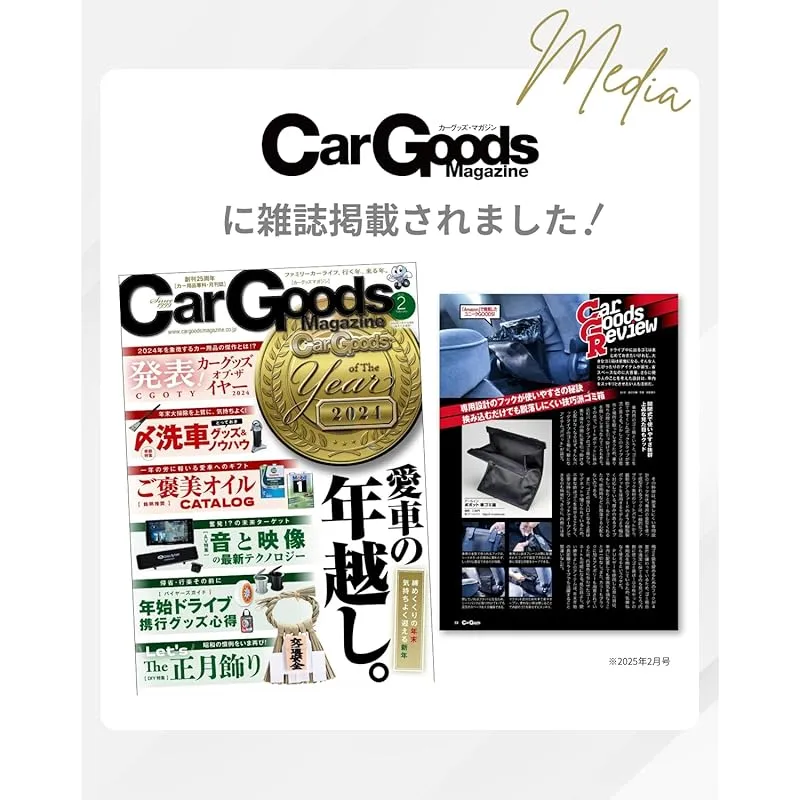 ?意匠権出願中のオリジナルフックを搭載した車用ゴミ箱。独自設計で傷つけず多車種対応し、カー用品としても車 収納をスマートに実現する便利グッズです。ゴミ箱 車としての安心感と使い勝手を両立し、カー用品 便利グッズ 車内での新定番になります。