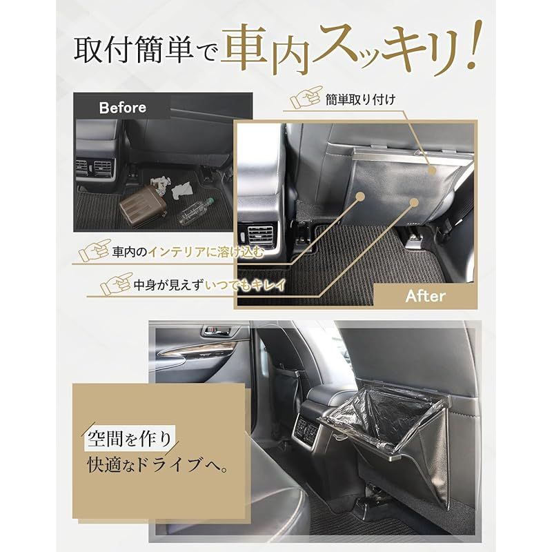 ?内装のインテリアに溶け込む上質なPUレザーを採用した車 ゴミ箱。高級感ある見た目でカー用品として映え、車 収納スペースをスタイリッシュに演出。カー用品 便利グッズ 車内としても最適で、ゴミ箱 車の違和感を抑えます。