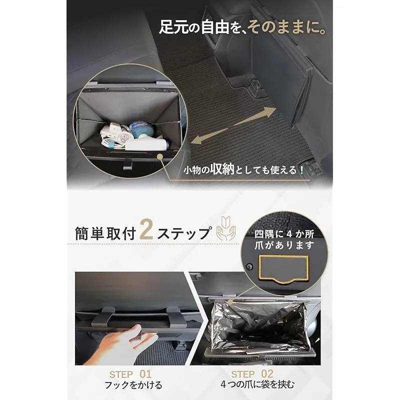 【多車種対応フック】を採用した車用ゴミ箱は、引っ張っても外れず安定性抜群。長時間ドライブ中の揺れやカーブでも倒れないため、カー用品 便利グッズ 車内として車 ゴミ箱の不安を解消します。コンパクト収納にも優れ、車用品として最適です。