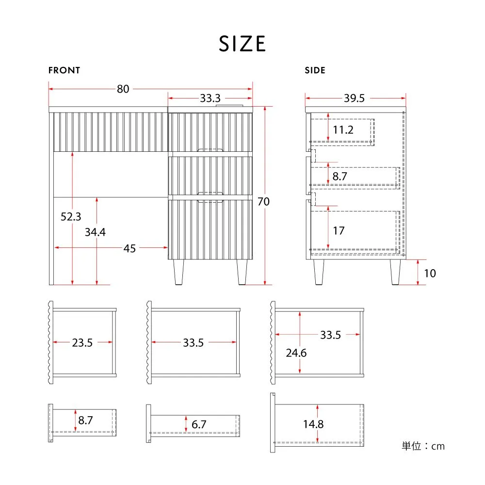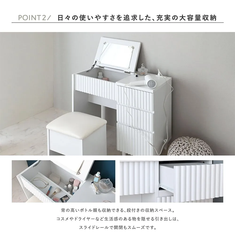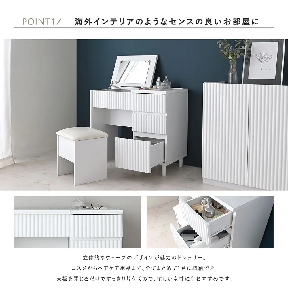 シンプルなフォルムに、立体的なウェーブのデザインが魅力のドレッサー。