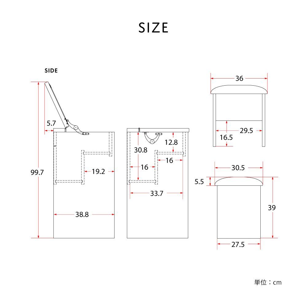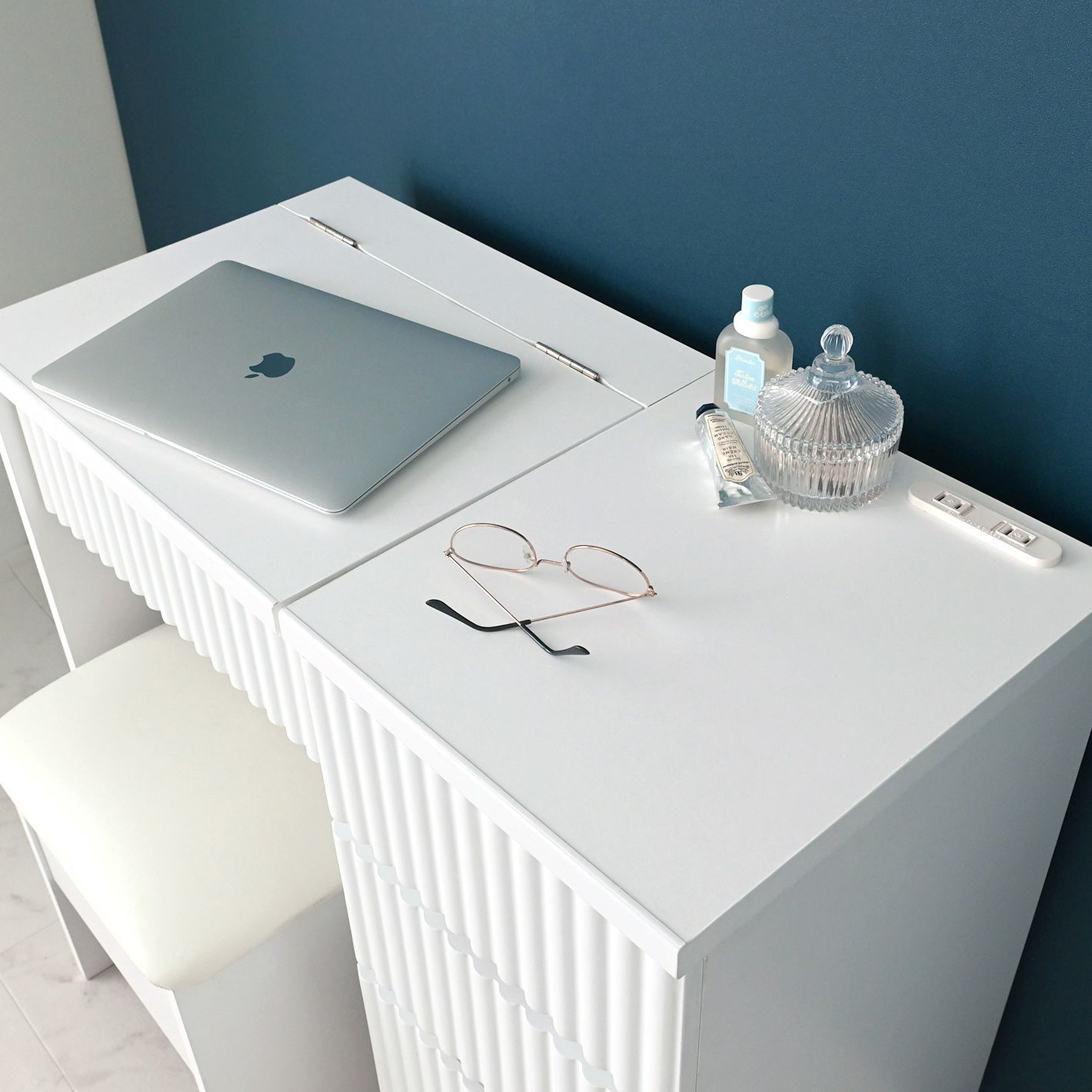 天板を閉じるとデスクに早変わり! 1台で2役をこなしてくれる、優秀なドレッサーです。