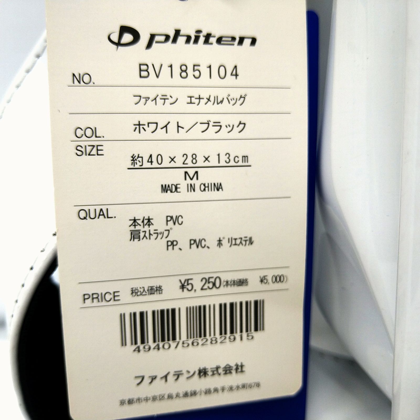 品名/型番:エナメルバック BV185104 ホワイト/ブラック Mサイズ