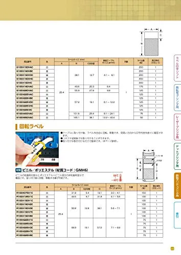 パンドウイット製熱転写ハンディプリンタ LS8E/LS17EQ 用のケーブル表示ラベルです。