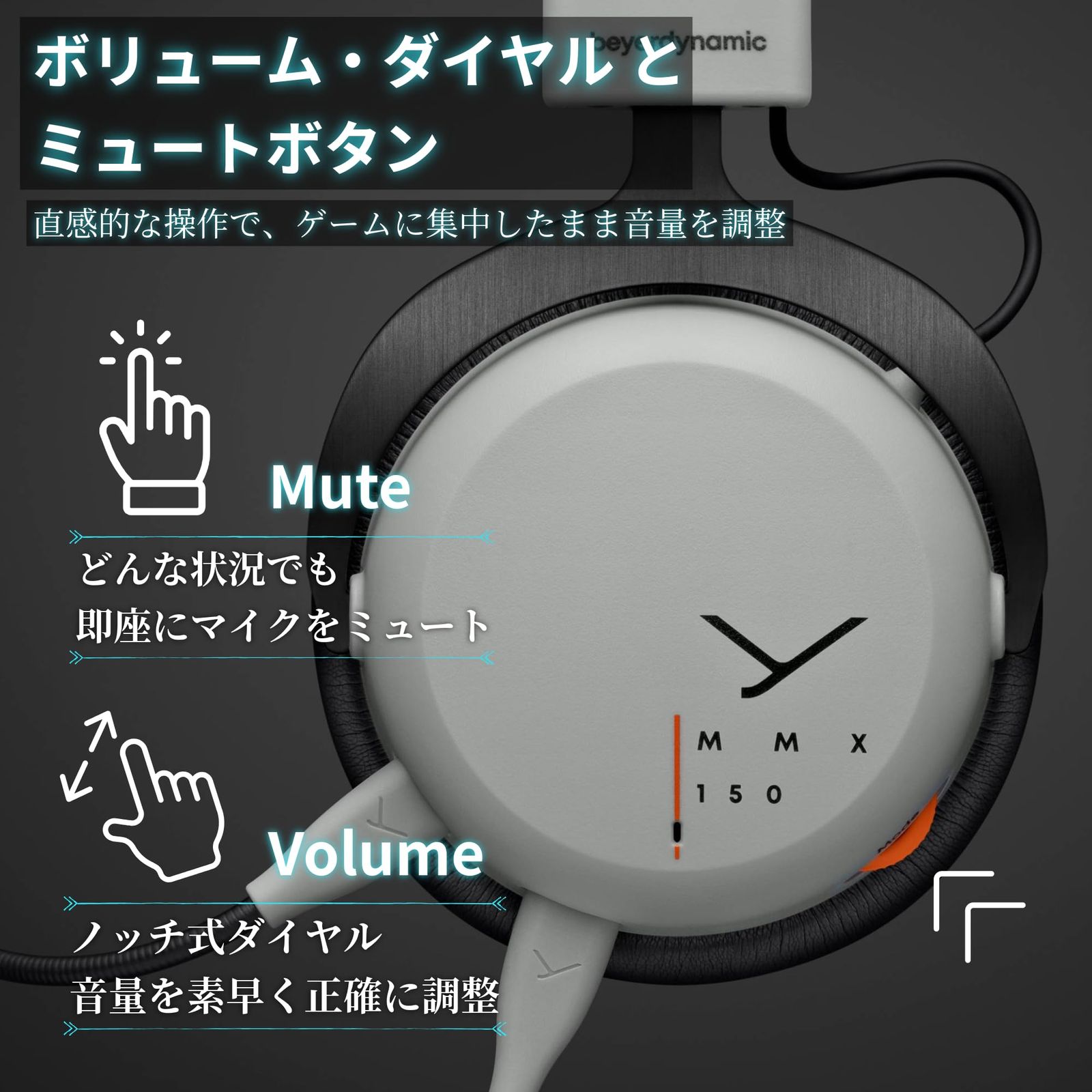 ボリューム、ミュート、オーグメンテッドモード用のコントロールエレメントを搭載したボリュームコントロールホイール