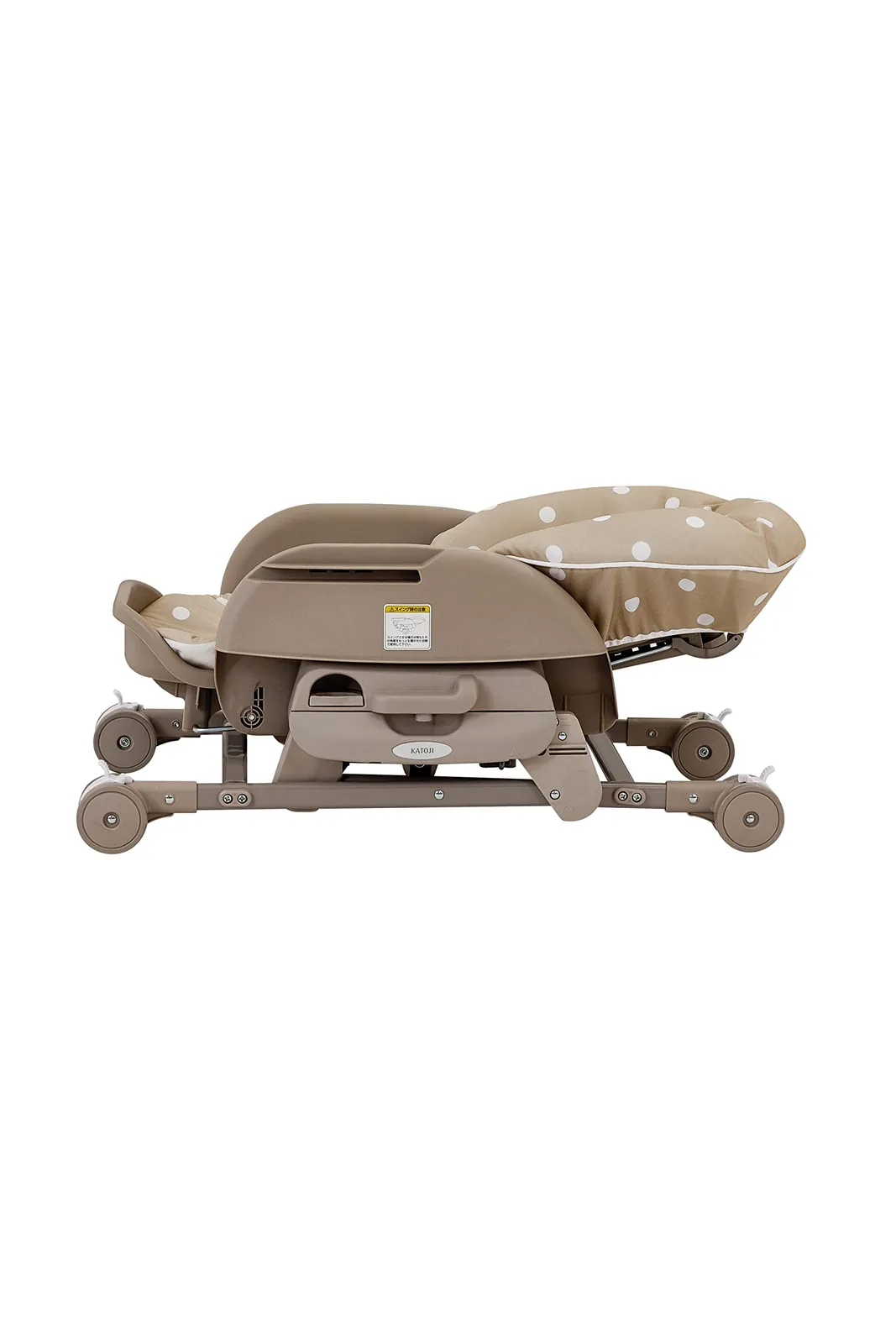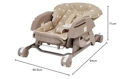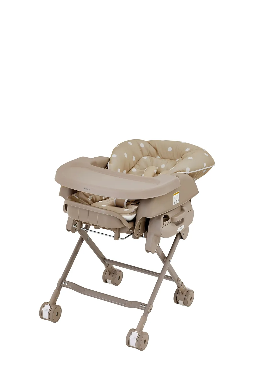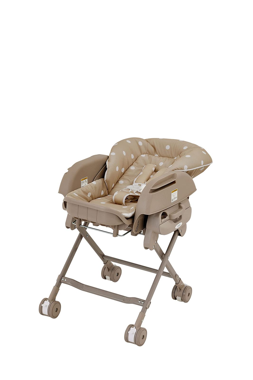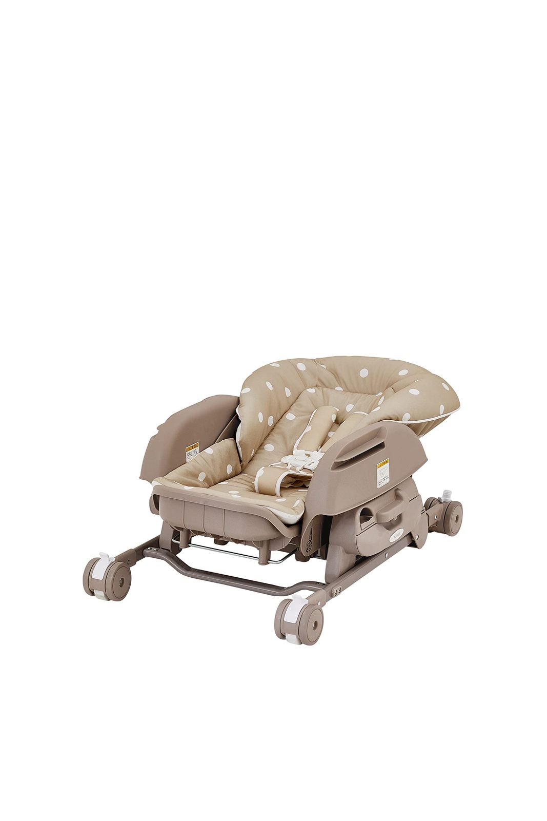 ラック、スイング、ハイチェア、ローチェアとして1台で生活スタイルににあわせた使用ができるコンパクトサイズのベビーラックです。
