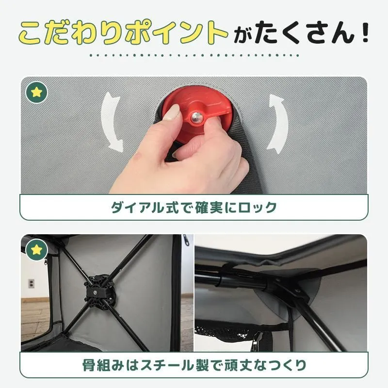 ・ペットと一緒に楽しめるキャンプやグランピング、そんな時のペットの快適スペース確保に!ワンタッチ組み立てであっという間に完成!工具不要。