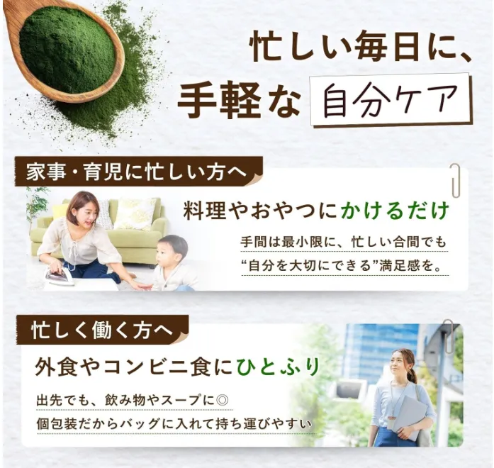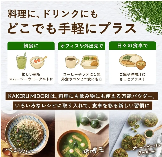 毎日の食事やドリンクに、“かける・まぜる”緑の習慣。
