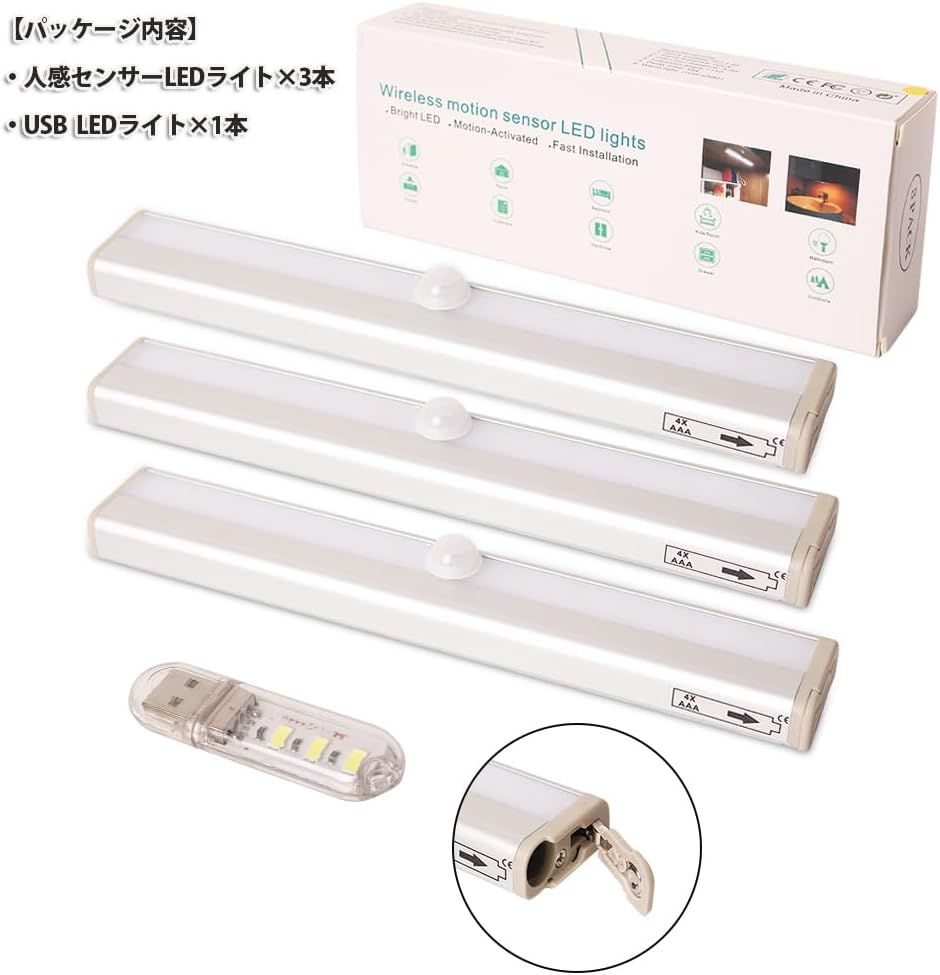 〖便利な電池式〗:単四電池を4つ使用ですので、約100グラム(電池は除く)と軽量のため、場所を選ばずにコンセントの届かない室内の階段、物置、クローゼット、本棚、玄関、キッチン、倉庫、廊下、寝室、地下室、トイレ、車など多用途に使えます。
