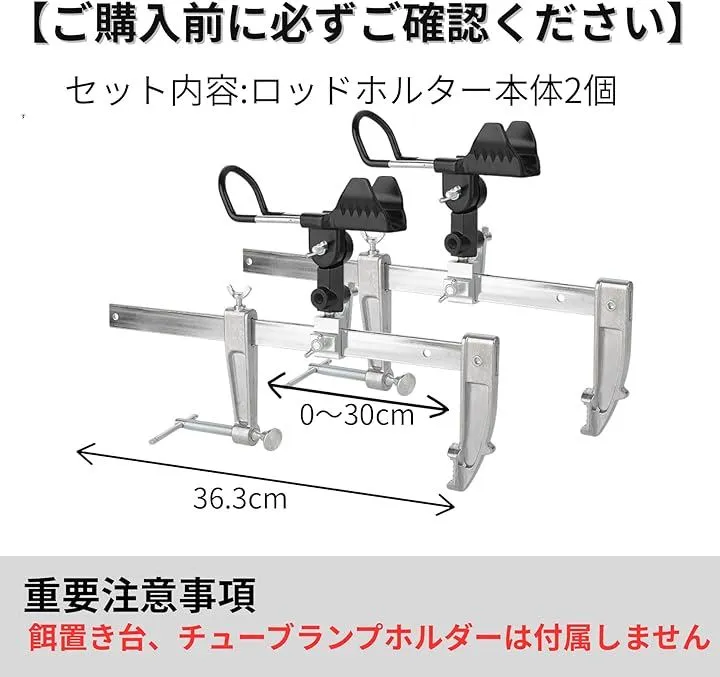 「セット内容」ロッドホルダー本体 (竿受け)x 2個 注:本製品には、餌置き台やチューブランプホルダーは付属しておりません。