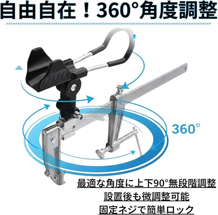 「360°回転で多方位対応」 竿受け部は360°全方位に回転調整が可能。