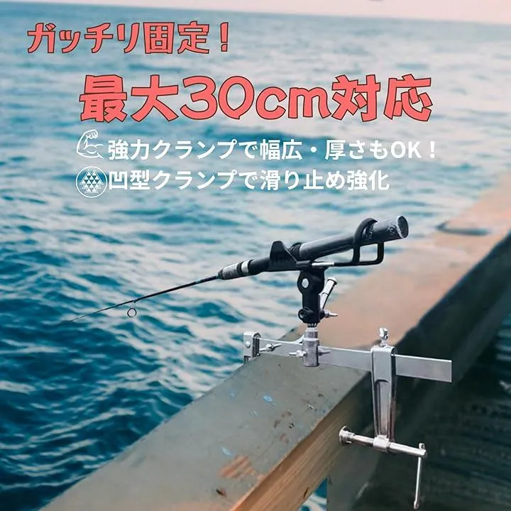 「寸法」全長:約36.3cm ロッドホルダー部幅:約 16.3cm クランプ部高さ:約 12cm ロッドホルダー部全体の高さ:約 12cm 最大クランプ幅:0~30cm