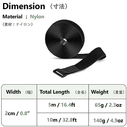 【マジック結束バンドの仕様】--素材:ナイロン、長さ: 5m / 10m、幅: 2cm、バックルX25本 / 50本重複使用できます。また結束バンドは安全で環境にやさしいもので製品や一緒に貼ったものを傷つけないです。