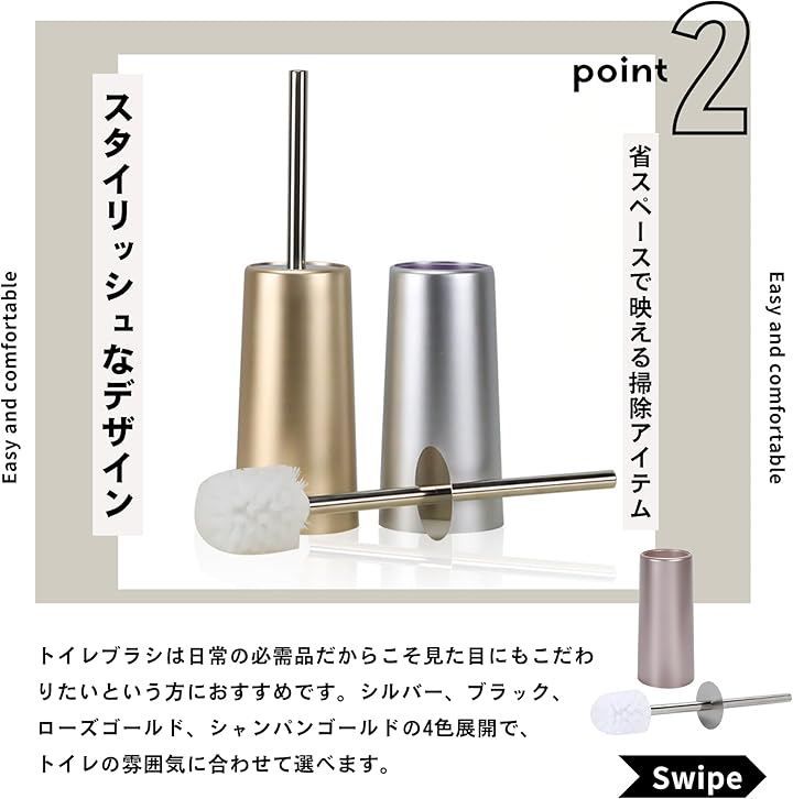 シルバー、ブラック、ローズゴールド、シャンパンゴールドの4色展開で、トイレの雰囲気に合わせて選べます。