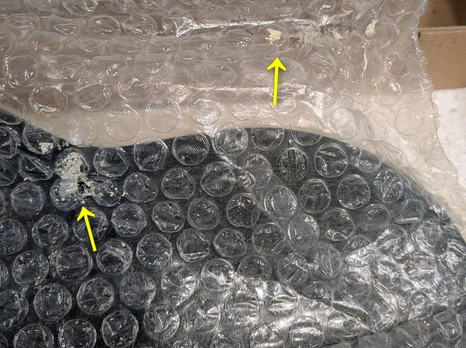 海外製品のため、購入時から細かなスレや箱、中のプチプチに傷みやペイントの付着がございます(画像11.12枚目)。