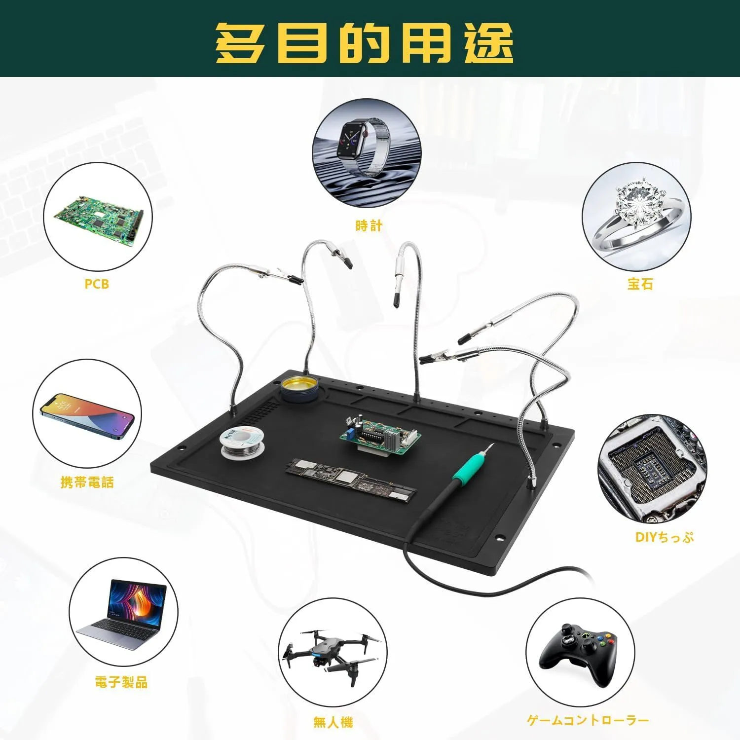 プロフェッショナルなはんだパッドデザインで、はんだ付けのために設計された多機能ワークスペースで、さまざまなはんだ、修理、その他のジュエリーはんだ付けキットを置くことができます。