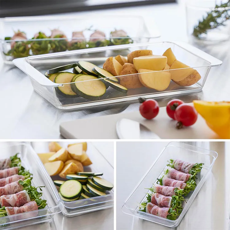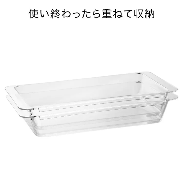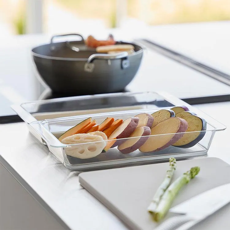連結できて便利な深型調理トレー2個組です。食材の色移りがしにくく、使いやすいデザインです。トレー同士はフチで連結できる便利な設計で、調理台を汚さず食材を移せます。持ち運びに便利な取っ手付き。食洗機OK。電子レンジOK。冷凍庫OK。