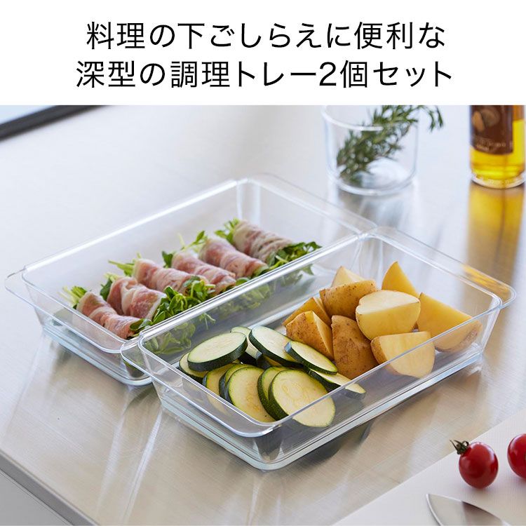 Tower Microwave-Safe, Connectable, Easy-To-Clean Prep Trays - Deep, Set Of 2 洗いやすい 取っ手付き 持ち手付き パン粉 卵液 小麦粉 餃子作り ハンバーグ 漬け込み 冷蔵庫保存 効率化 時短家事 収納 コンパクト 食洗機で洗える 天ぷら からあげ キッチンツール 調理ツール レンジ対応 食洗器 食器洗い乾燥機 繋げられる ボウル 山崎実業 電子レンジ対応連結できる洗いやすい下ごしらえ調理トレー 連結 2個組 タワー tower 10337 クリア 公式 バット 食洗機対応 深型 下ごしらえ トレー 2個セット 電子レンジ対応 色移りしにくい 耐熱 耐冷 日本製 料理 衣付け 揚げ物 トレイ 下味 調理トレー 冷凍 透明 調理器具 蓋なし 角バット 軽い 調理台が汚れにくい 汚れ防止 掃除が楽 キッチン用品 便利グッズ レンジ調理 時短 冷蔵 連結 スマート 角型 四角 長方形 スタイリッシュ ナチュラル モダン 無地 北欧 シンプル おしゃれ オシャレ お洒落 モノトーン スマート 新生活 引越し 引っ越し 新築 結婚 祝い 新居 キッチン 台所 食堂 収納 カフェ オフィス マンション アパート 一人暮らし ひとり暮らし 1人暮らし 二人暮らし ふたり暮らし 2人暮らし ファミリー 家族 一戸建て 戸建 賃貸 スリム 省スペース コンパクト 小さめ 便利 インテリア インテリア雑貨 収納雑貨 生活雑貨 整理整頓 整理用品 スペース 有効活用山実 やまじつ ヤマジツ やまざきじつぎょう たわー towerシリーズ ブランド インテリアブランド