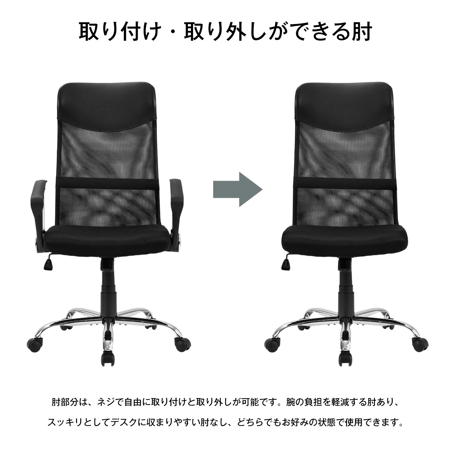 【アームレスト付き】肩の疲れを軽減するアームレスト・取り付けなくでいい!