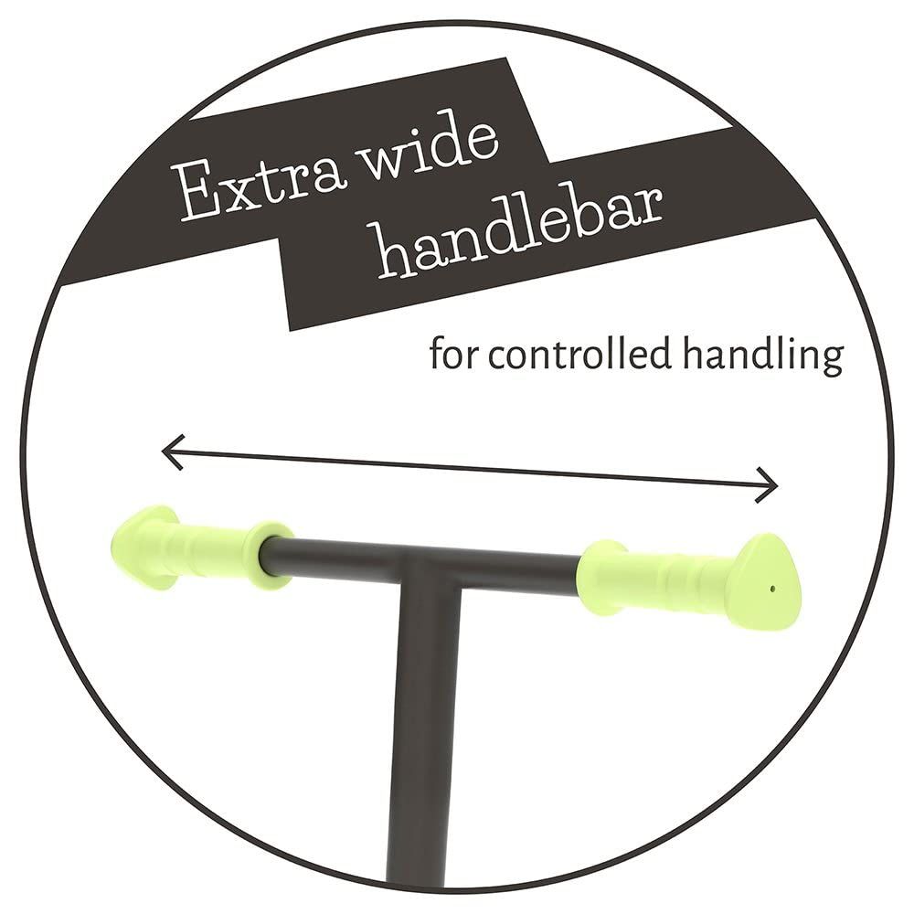 操作しやすいワイドなハンドルバー。60度回るハンドルでトリックを格好良く決めよう!グリップの効いたハンドルに、高品質ABEC-5で乗り心地抜群!