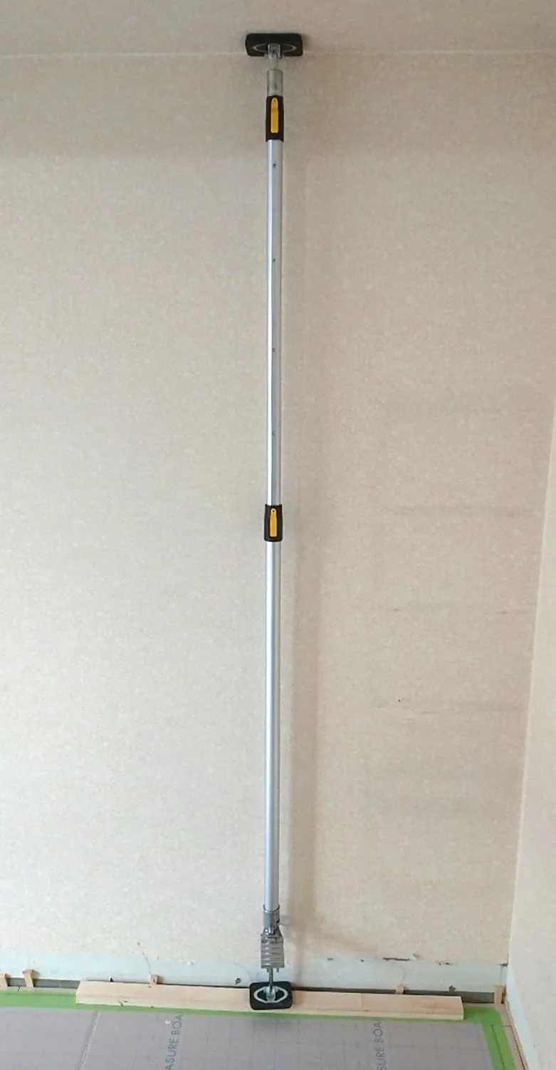 足踏みペダルで養生シート、天板など簡単に突っ張る事ができる