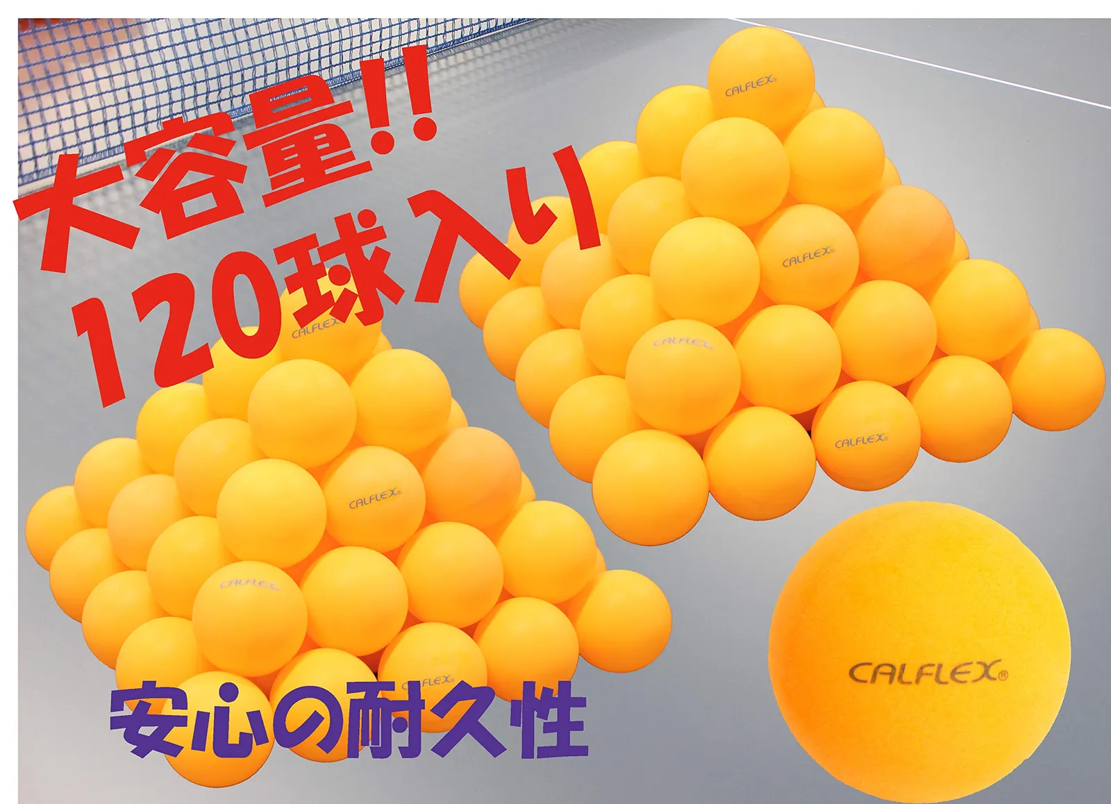 大容量の120球入り卓球ボール。 トレーニング用に最適です。 ABSによるしっかりとしたつくりで実践練習に耐えられる耐久性があります。 120球入りなので十分なトレーニングが可能です。 カラー:オレンジ 120球入り 材質:ABS(プラスティック)