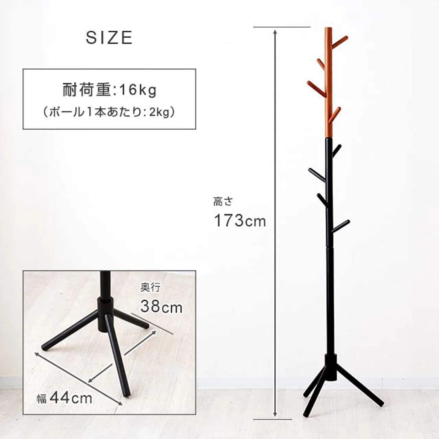 耐荷重:(約)全体16kg、フック1本あたり(約)2kg
