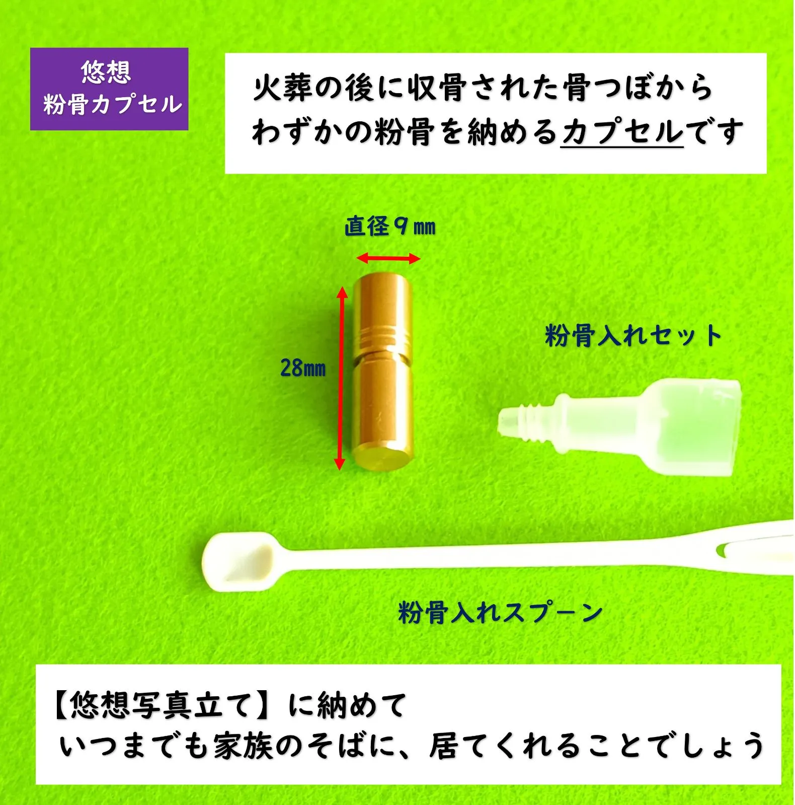 お気に入りのお写真と、ほんの少しの紛骨をカプセルに納めて