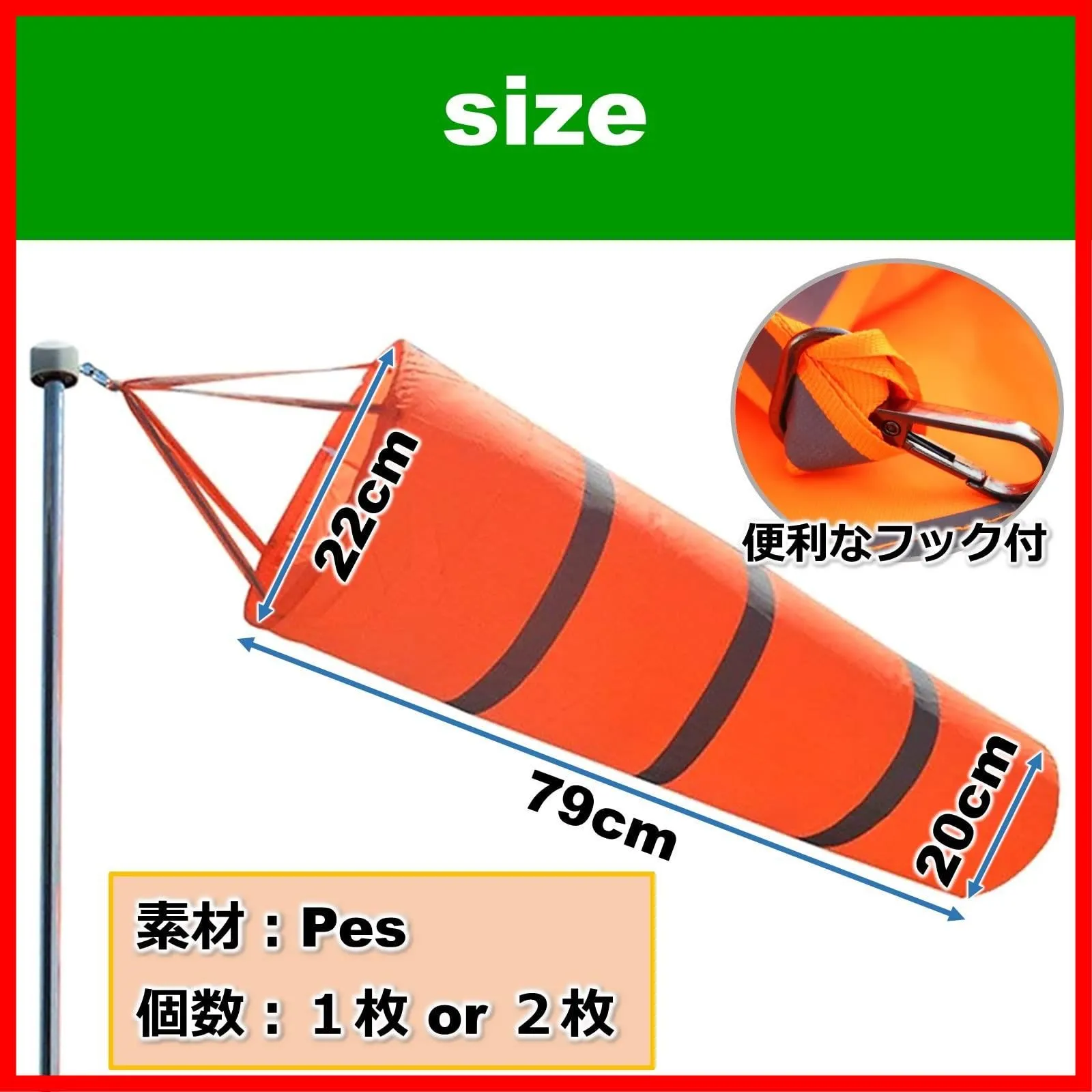 ルボナリエ 吹き流し 風測定バッグ 風速 風量 測定 風力事業 気象観測 農業 漁業 (オレンジ 1枚)