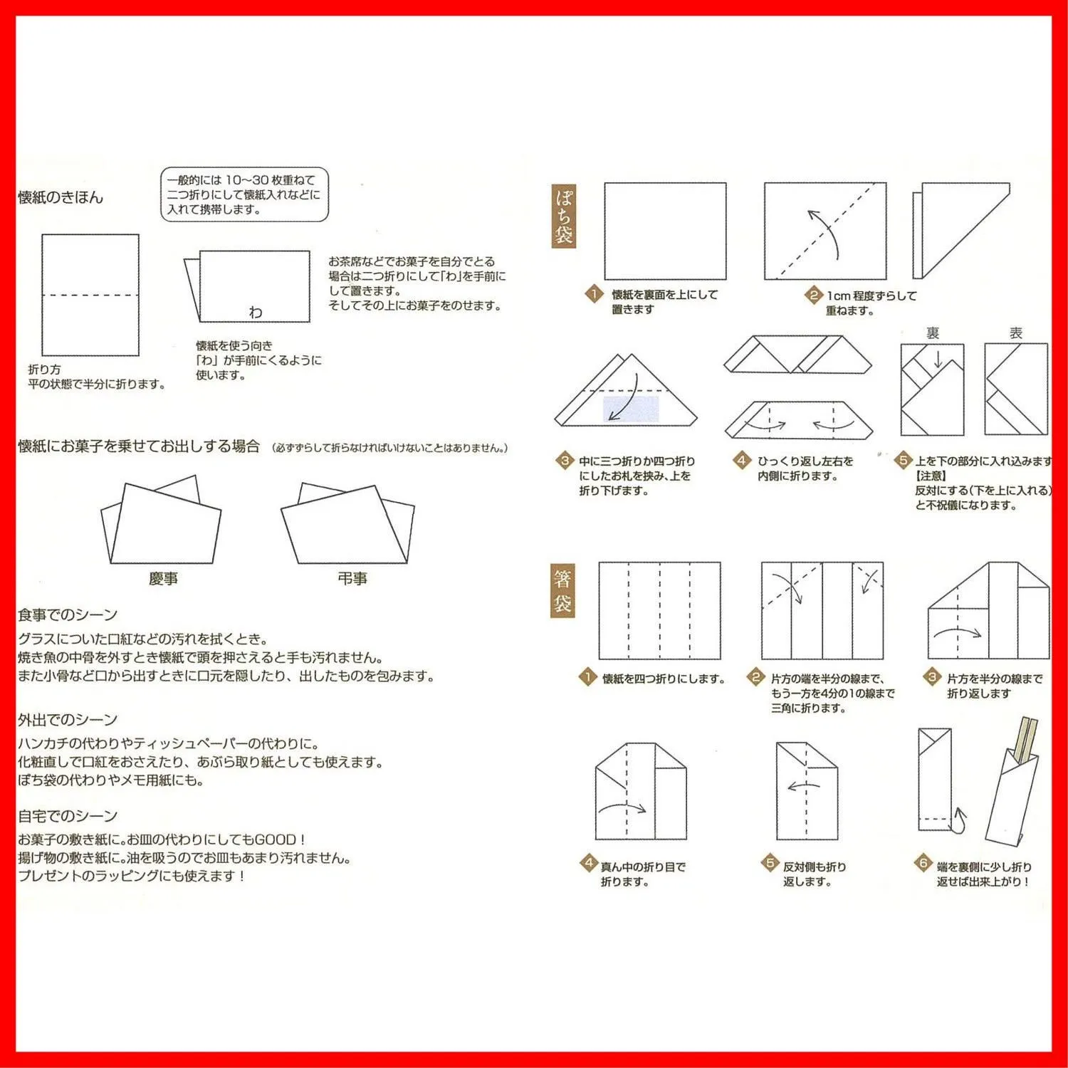 お茶の席にはもちろん、メモや便箋・ポチ袋、ハンカチやちり紙の代わりにも